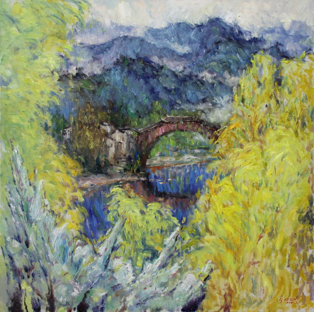蔡可群《廊桥春日》浙江生态油画展优秀奖