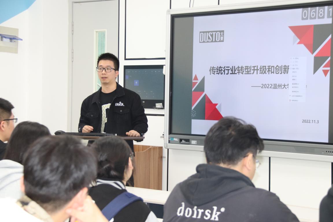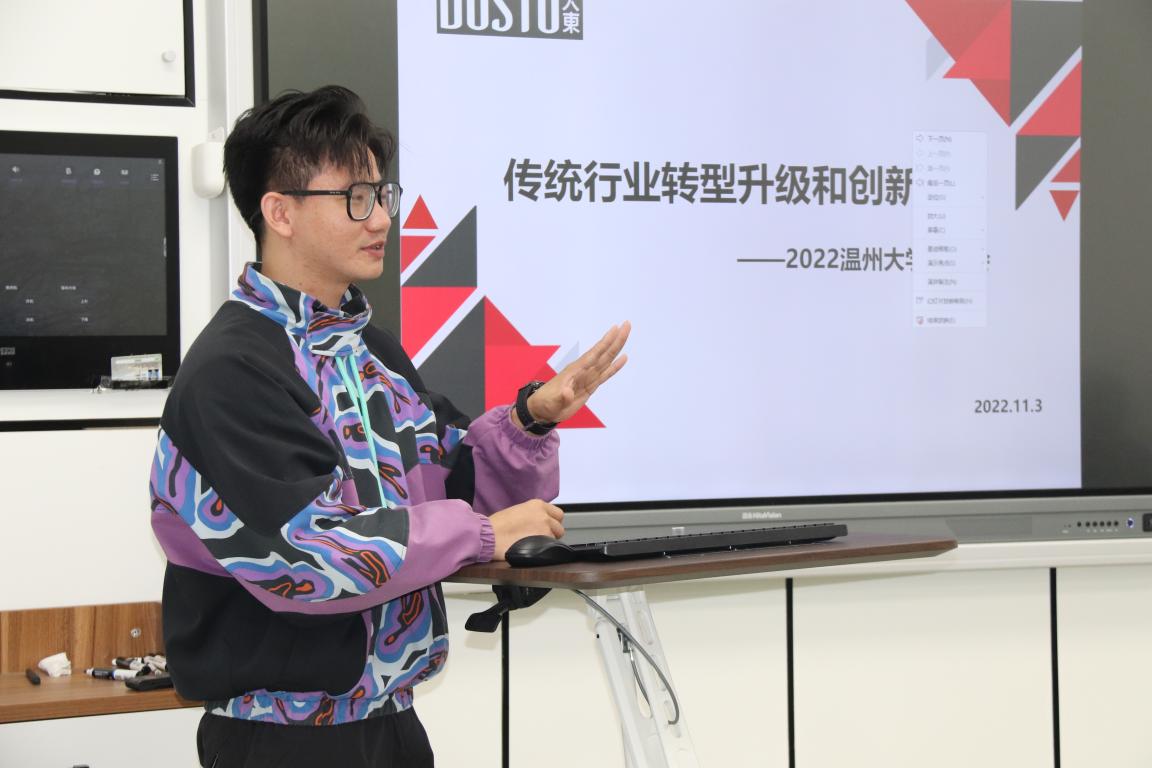 宣讲会第一个环节,由顾院长向参会同学们介绍了大东品牌在温州乃至全国的知名度,开元官网与大东开展校企合作的历程和往届毕业生签约等情况,并鼓励同学们把握校园招聘会的契机,以积极的态度和饱满的热情,充分展示自己的专业技能和才华,实现高质量就业。