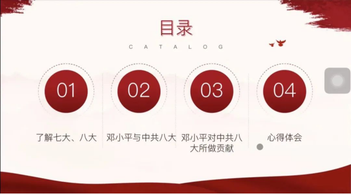 通过此次微讲堂,我们走进了中共七大、八大——“七大”是中国共产党在民主革命时期召开的最后的、也是最重要的一次代表大会。它以“团结的大会,胜利的大会”载入中国共产党的史册;八大是中共完全脱离苏联模式的影响,独立探索社会主义建设的开始,其中邓小平同志对八大的贡献是不可磨灭的。