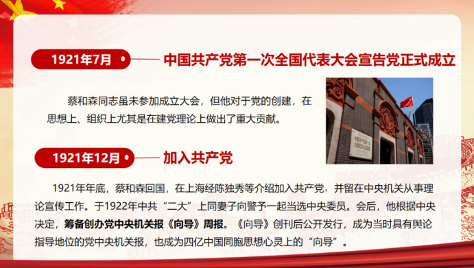 宣讲人:顾媛学生第一党支部 19美师1班一、课程介绍 回望过往奋斗路,眺望前方新征程。 1922年7月,中共二大在上海召开。党的二大在中国近代史上第一次明确地提出了反帝反封建的民主革命纲领,为党确立新民主主义革命的基本思想奠定了基础。 本期“喜迎党的二十大 美院微讲堂”活动由温大美院的党员顾媛以《蔡和森:明目张胆正式成立一个中国共产党》为主题开展,向我们阐述了党的二大代表人物蔡和森先生的英雄事迹,让我们了解了他的一生。现在已经是和平年代,不需要流血牺牲,但是我们仍然可以学习蔡和森先生无私奉献的精神,努力成为一名优秀的党员。二、活动方式 活动时间:6.19周日晚上18:30 活动地点:KY开元集团官网入口 二楼2B236三、课程回顾 内容概要 人物:蔡和森 二大湖南组代表 人物事迹:1913年,18岁的蔡和森考入湖南省立第一师范学校,与毛泽东成为同学。1918年他与毛泽东等人组织成立新民学会,创办了《湘江评论》。 为了探寻中国革命道路,1919年12月,蔡和森赴法国勤工俭学,学习并翻译了上百种介绍马克思列宁主义和俄国革命的书籍。期间蔡和森同国内的毛泽东等人通信,第一次提出要“正式成立一个中国共产党”。1921年12月,回国不久的蔡和森加入中国共产党。 他曾任中央政治局常委,中央宣传部部长,中共中央南方局书记。1931年,因叛徒出卖,蔡和森被捕牺牲,年仅36岁。人物评价: 毛泽东曾说,“一个共产党员应该做的,和森同志都做到了。”1935年,有人这样评价蔡和森:“由于他的笃于友爱的性格,使他对于国家民族,对于全国同胞发展了最伟大的友爱,不惜牺牲一切以为国家民族,全国同胞求解放。”邓小平后来也曾动情地说:“蔡和森同志是我党早期的卓越领导人之一,他对中国革命作出了重大的贡献,中国人民永远记着他。”四、心得体会 宣讲人感悟:通过本次宣讲,我进一步地了解了中共二大的代表人物蔡和森。蔡和森一生虽然短暂,但他对中国革命的贡献却是居功至伟,正是他的积极推动,共产主义才在中国大地上生根发芽,最终盛开出灿烂的篇章。像他一般的共产党员在党史上还有许多,而我们通过党史学习教育,是一次深刻的思想淬炼,筑牢了理想信念,强化了初心使命。学员心得:本次微分享,主讲人讲述了蔡和森先生的故事。蔡和森先生是第一个明确提出成立中国共产党的人,他在年轻时代就热烈追求革命的真理,立志拯救国家,改造社会。在救国图存的道路上,他始终立场坚定,以大无畏的革命精神横眉冷对、坚贞不屈,为了党的事业壮烈牺牲,年仅36岁,令我感慨颇深,其实在近代史上,还有无数的革命先辈,牺牲在救国图存的道路上,为中国革命的道路指明了方向,我们现今,作为新一代青少年应该传承与学习这些老前辈的精神,努力实现中华民族伟大复兴。——19美师2班倪洁 蔡和森自幼饱受生活艰辛,目睹国家民族危难,很早就抱有匡扶时难、救国救民的理想。并且很快付出了实际行动,“驱张运动”便体现出他的正义感以及良好的组织能力,拥有担当作为、甘于奉献的精神,为留法勤工俭学运动做好扎实准备和组织协调工作。他毫不动摇地在斗争中捍卫和宣传马克思主义,为中国共产党指明方向,其实干精神深深打动了我,他的英勇事迹应该被人们牢牢地记在脑海中!——20服设3班吴响笑 我们不能忘记,是蔡和森第一次旗帜鲜明地称中国的无产阶级政党为“中国共产党”。蔡和森积极参与党的创建,为中国共产党的发展做出了突出贡献;他英年早逝,为革命流尽了最后一滴血。我们都要发扬他们的精神,从他们身上汲取奋发的力量,共同为推进中国特色社会主义伟大事业、实现中华民族伟大复兴的中国梦而顽强奋斗、艰苦奋斗、不懈奋斗。——21服设1班冷玲玲 通过此次微党课,美院学子对中共二大有了更深刻认识,也在学习英雄事迹的过程中强化了自身理想信念,身为新一代学生党员理应不忘初心牢记使命,回望过往奋斗路,眺望前方新征程。