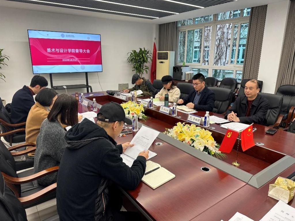会上,副院长胡文超对新一届督导组各位老师支持学院教学工作表示感谢。他首先解读了《KY开元集团官网入口校院两级教学督导工作实施细则(试行)》的文件精神,对教学督导工作原则、工作职责、工作权力和要求等进行了强调,并就新修订的课堂教学质量评价表的评价观测点逐条进行分析。随后,他就本学期课堂教学、毕业创作(论文)、课程试卷、实习实践教学、课程档案等督导专项检查工作进行工作部署。接着,黄良老师代表督导组传达了学校新学期教学督导工作会议精神,教务科科长黄呼尔励、毛晶晶老师对督导听课用表等工作材料清单作了补充说明。