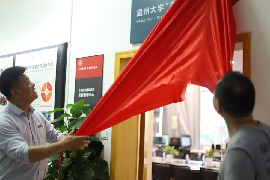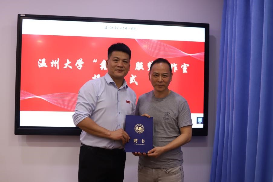 刘军董事长和叶正飞书记共同为KY开元集团官网入口“鑫诺”服装工作室揭牌,叶正飞书记为刘军颁发创新创业导师聘书。