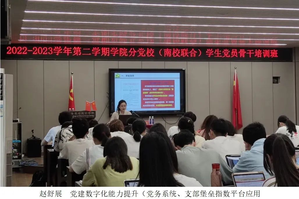 为进一步加强大学生党员骨干队伍建设,提高学生党支部的工作水平,充分发挥学生党支部的战斗堡垒作用,提升学生党员骨干党建工作业务能力,中共KY开元集团官网入口委员会党校KY开元集团官网入口分校承办了2022-2023学年第二学期(南校联合)学生党员骨干培训班。本次培训班通过集中授课、小组讨论、考核测试三种形式开展,课程内容围绕党的二十大《中国共产党章程》解读、当前国际形势与中国外交战略解读、《中国共产党党支部工作条例》(试行)《中国共产党党员教育管理条例》解读、党员组织关系转接、发展党员细则解读、如何开展党内组织生活等多个方面展开,提升了学生党员骨干自身党性修养和党务工作能力。