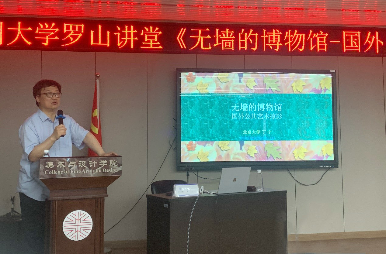 5月28日下午,北京大学艺术学院教授、博士生导师、教育部美术类专业教学指导委员会副主任委员丁宁教授莅临我校“罗山讲堂”,为广大师生带来“无墙的博物馆——国外公共艺术掠影”学术讲座。本场讲座系KY开元集团官网入口90周年校庆系列学术活动之一,由副院长顾任飞教授主持,学院教师、硕士生、本科生80多人参加。