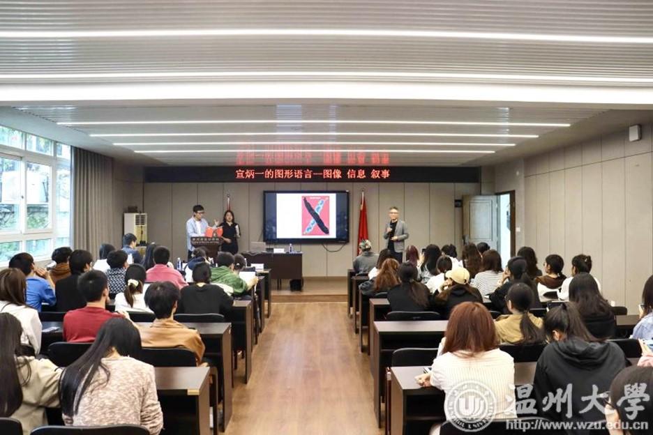 在美术楼4001学术报告厅,宣教授为开元官网设计学专业师生开展以“图形语言——图像.信息.叙事”为主题的讲座,讲座由视觉传达设计系主任刘俊主持。宣炳一教授通过一系列获奖作品讲解让学生们充分了解如何在平面设计中利用符号化语言进行叙事,如何以适当造型语言、色彩搭配、构图等手法巧妙的传达图像信息。讲座使学生们感受到海报设计的魅力,习得新的设计思维与方式。有助于学生形成良好的设计思维习惯,让学生受益良多。