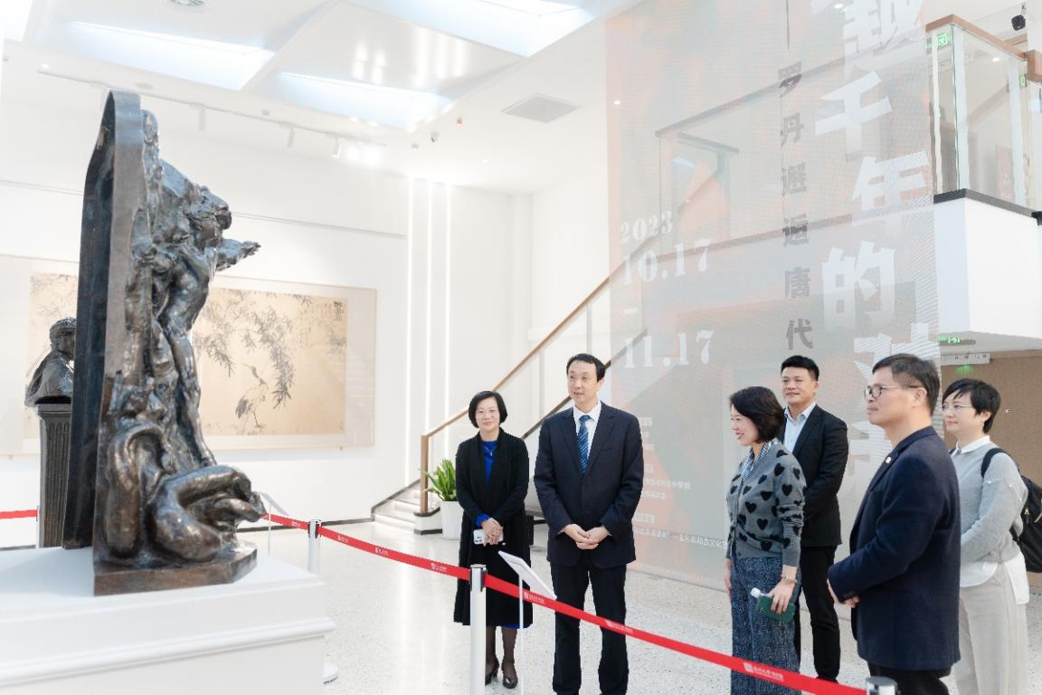 2023年11月15日下午,“罗丹邂逅唐代石雕——跨越千年的对话”活动交流分享会在KY开元集团官网入口美术馆举行。此次活动是开元官网美育学术讲座系列活动之一,也是“罗丹邂逅唐代石雕——跨越千年的对话”展览的重要组成部分。KY开元集团官网入口党委书记张健、温州市文化广电旅游局副局长李方喜、温州文化交流大使、法国罗丹博物馆中国馆总负责人吴静、温州市社科联党组成员、副主席倪考梦、KY开元集团官网入口意大利分校校长吴敏、上海安邸卡文化艺术发展有限公司负责人吴斌,杭州丰珥文化艺术有限公司董事长钱品益、温州市和合文化艺术交流有限公司创始人方小和,以及开元官网院长谢子静、党委书记叶正飞、副院长顾任飞和学院师生代表70多人参加了活动,院长谢子静主持交流会。
