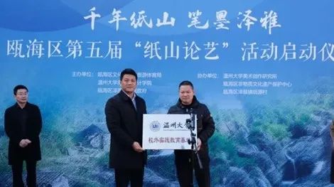 启动仪式上,KY开元集团官网入口与瓯海区文化和广电旅游体育局校地合作,签署了双方合作框架协议,今后将持续开展名家学术交流,写生采风、艺术展览等系列活动。同时,KY开元集团官网入口校外实践教育基地在泽雅镇纸源村揭牌,将充分发挥美育功能,鼓励创作更多积极向上、主题鲜明、感情真挚的艺术作品,充分展示泽雅纸山文化旅游品牌,为广大游客提供丰富的精神食粮,进一步加厚纸山文化,助推文旅融合共同发展。