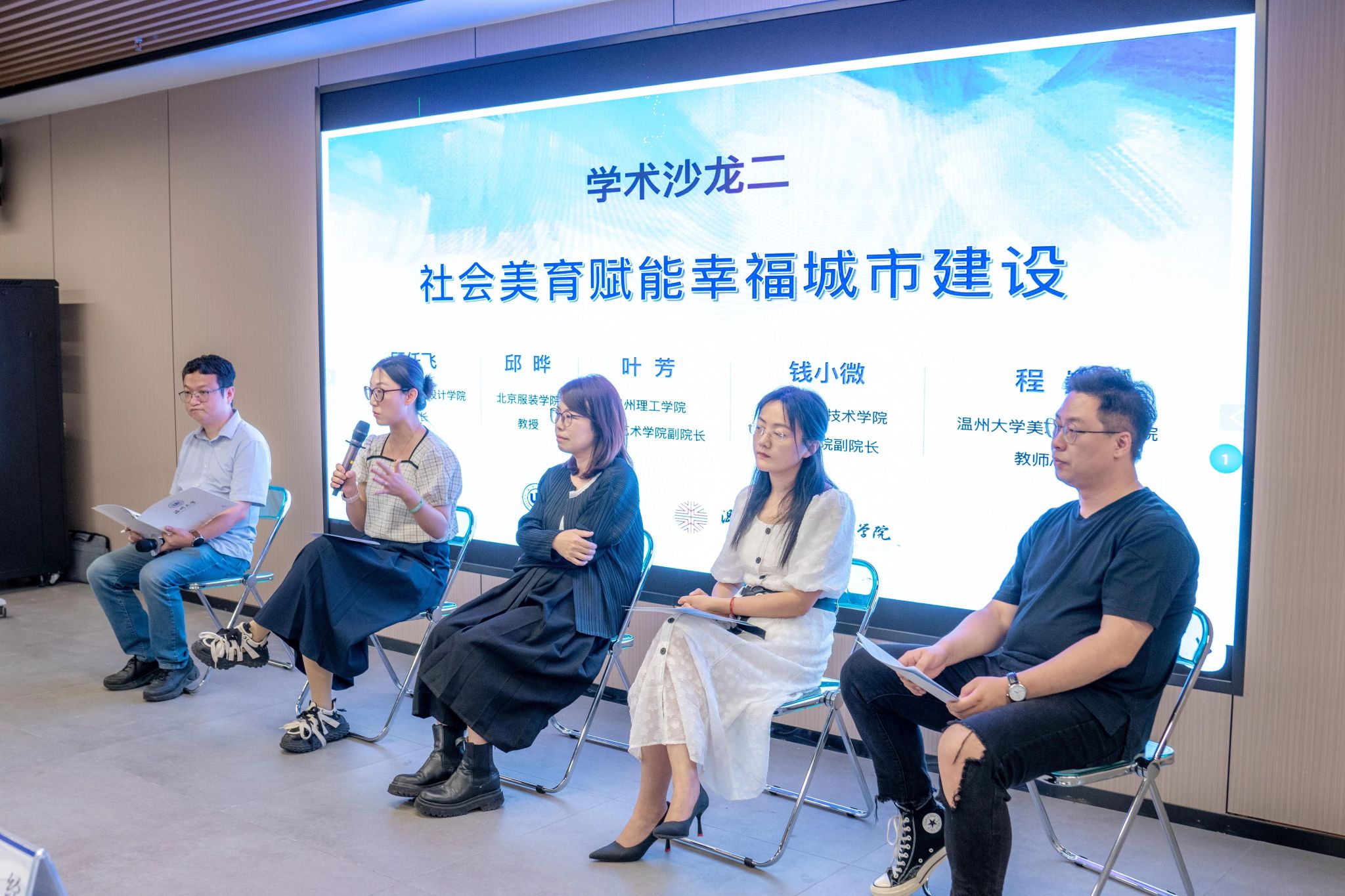 该场由KY开元集团官网入口副院长、教授顾任飞主持,北京服装学院教授邱晔,温州理工学院设计艺术学院副院长叶芳,温州职业技术学院设计学院副院长钱小微,KY开元集团官网入口教师、博士程巍围绕“社会美育赋能幸福城市建设”展开分享和讨论。