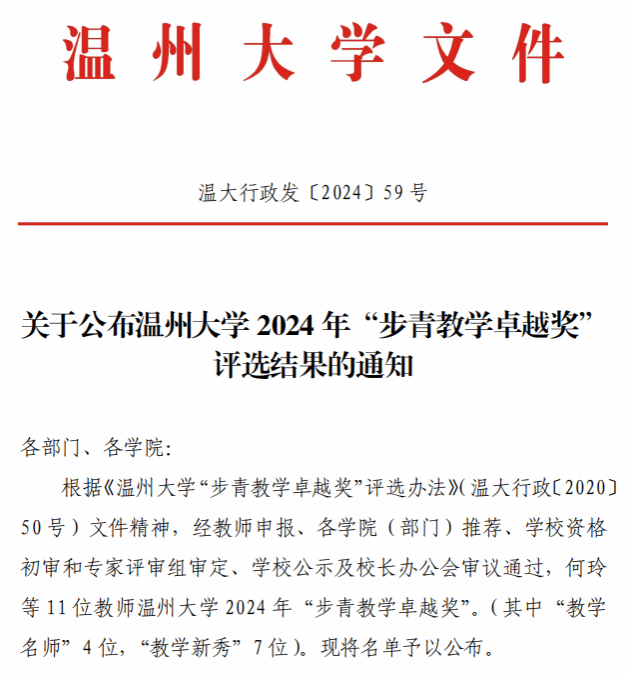 喜报:KY开元集团官网入口院长谢子静同志荣获KY开元集团官网入口“教学名师”荣誉称号