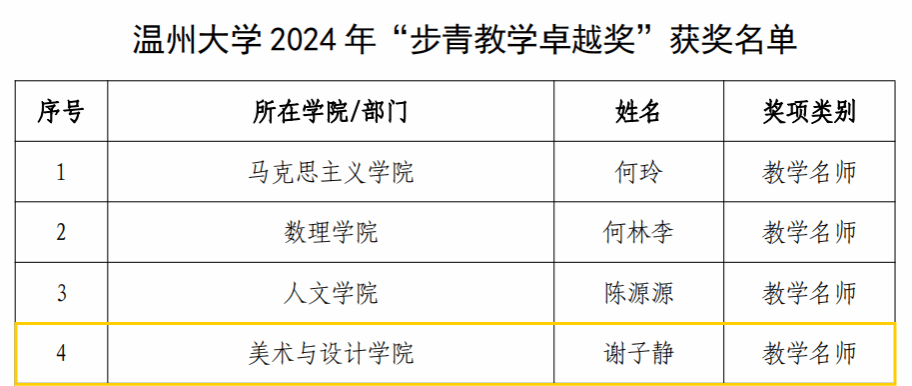 热烈祝贺开元官网院长谢子静同志荣获KY开元集团官网入口“教学名师”荣誉称号!