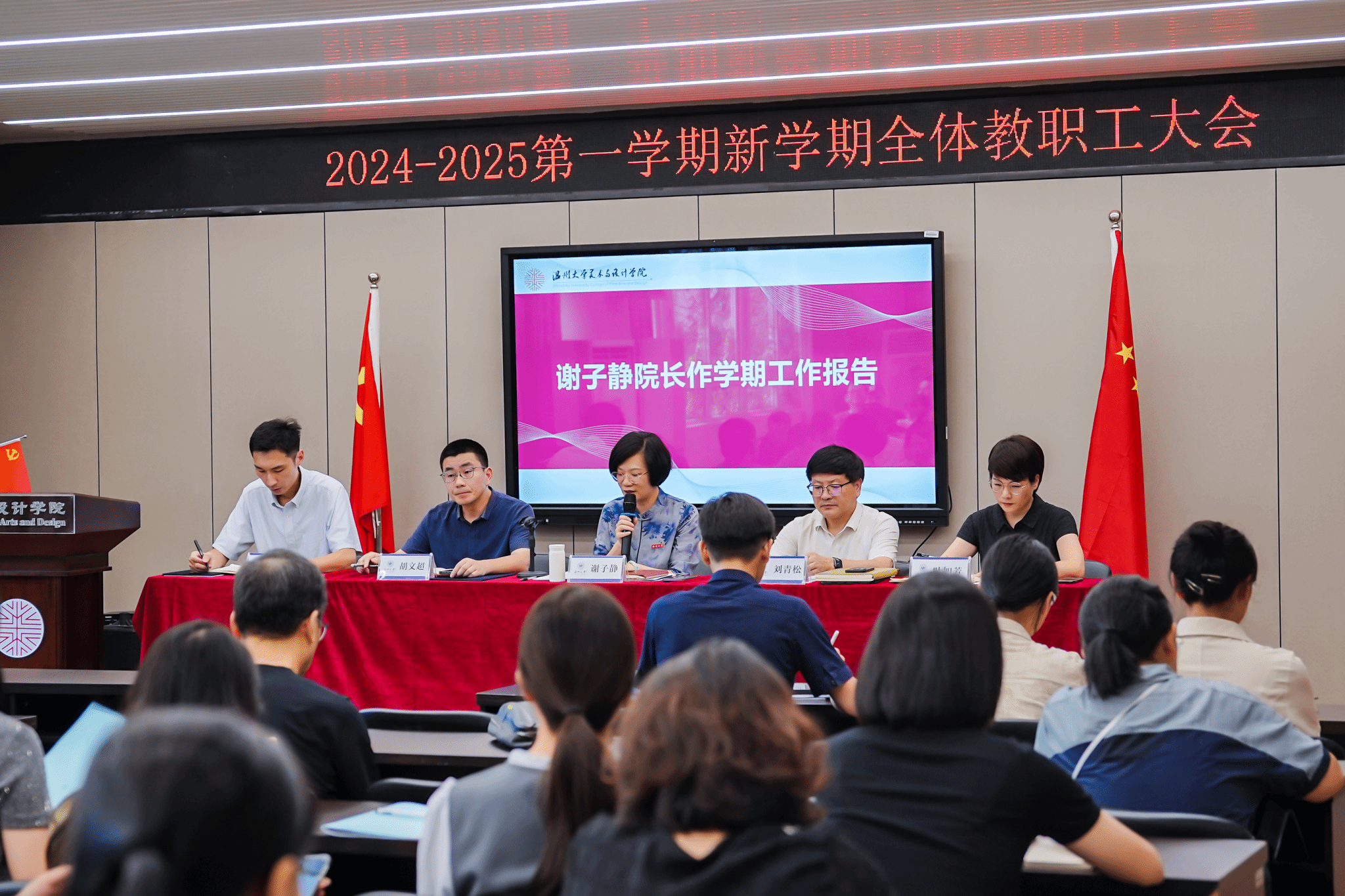 会上,谢子静院长作学期工作报告,她总结了过去一学期和暑假期间,学院各系室、部门在争创一流学科、学术交流等八个方面取得的优异工作成绩,肯定了老师们取得的丰硕成果和服务地方的各项行动。随后,谢子静院长详细部署了新学期的工作重点,学院要锚定“两大目标”,立足“十大重点项目”,使开元官网在专业内涵发展、学科提升、毕业展秀、毕业生就业质量、引才引智、美育文化、维稳与安全、党建促发展等方面取得新的成效。同时,顺应时代发展新契机,拥抱AI新科技,迎接教育未来,发挥学科、专业优势,推动美育建设,提升美育成效,强化产业链接,促进校地服务与合作,打造学院发展新亮点。胡文超副、叶如芳副书记、高玥委员作工作部署,刘青松书作新学期工作部署。