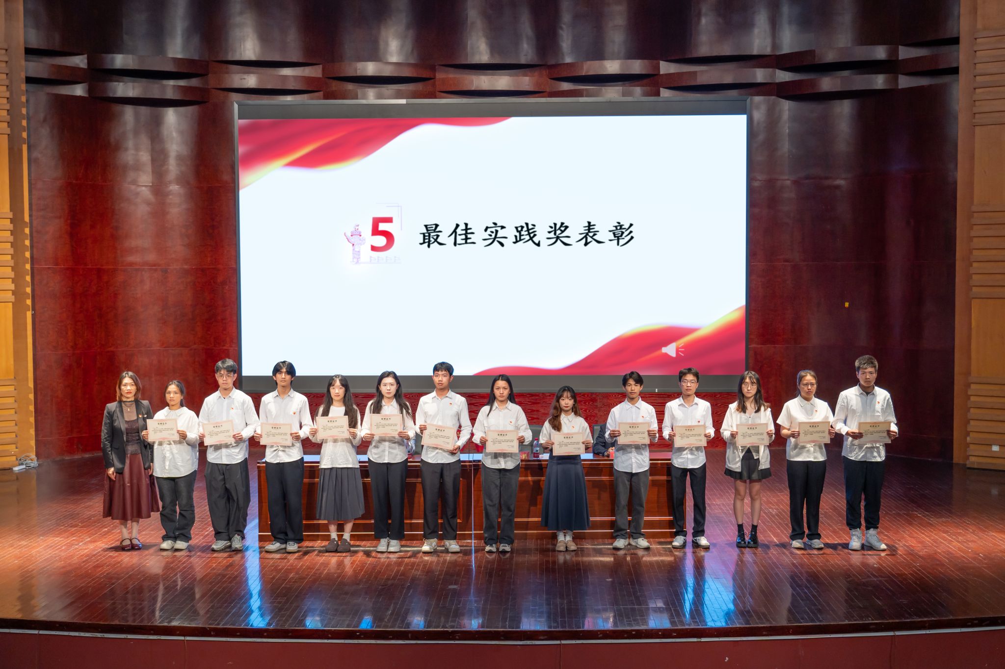 在庄严的国歌声中,本次结业典礼正式拉开帷幕。