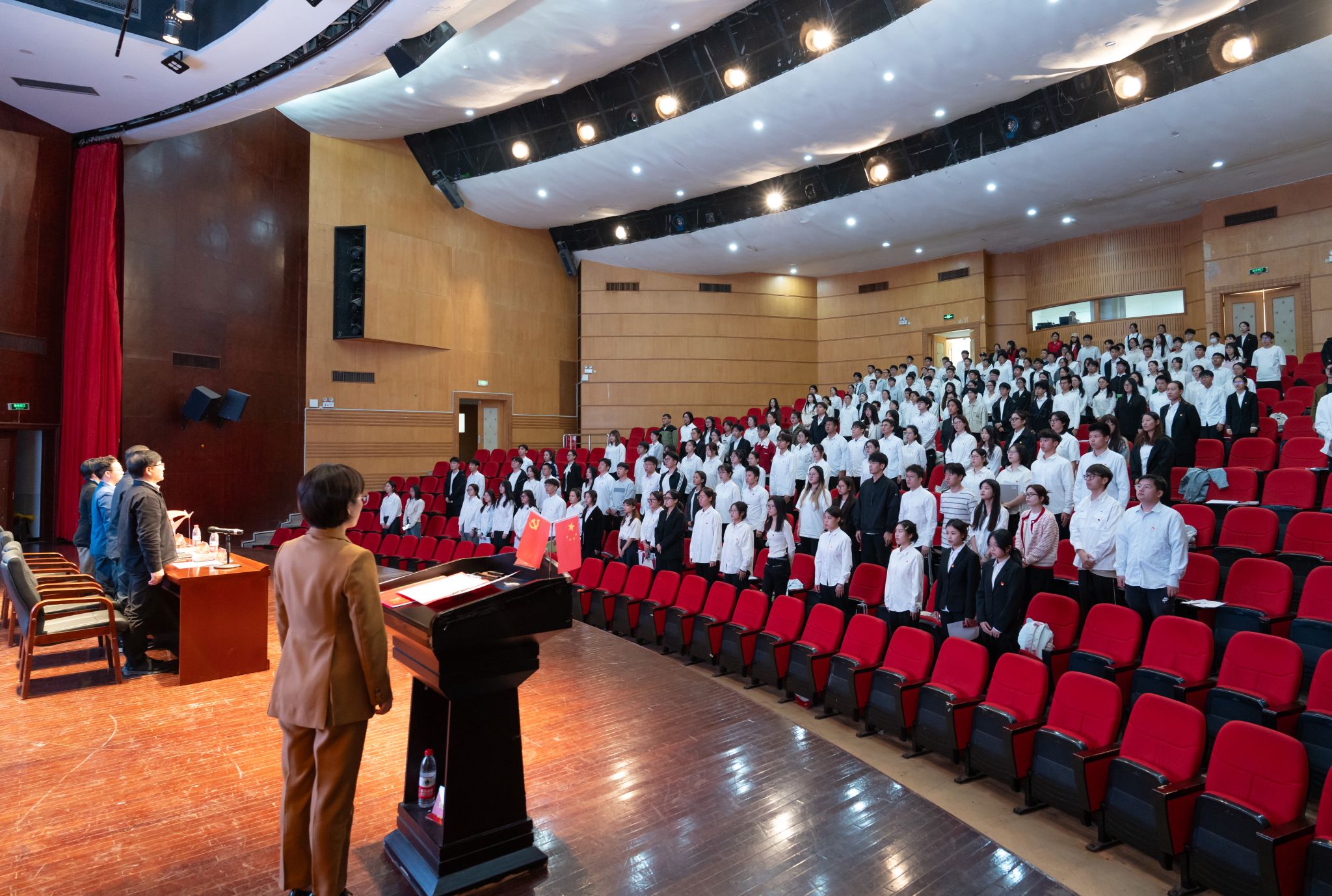 国歌响起,全体起立。开班仪式在庄严肃穆的国歌声中拉开序幕。