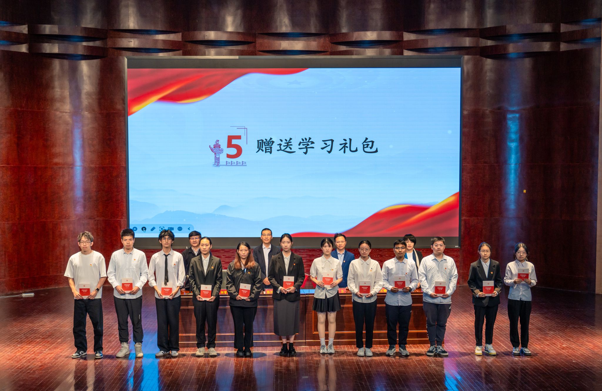 向学员代表赠送学习材料。