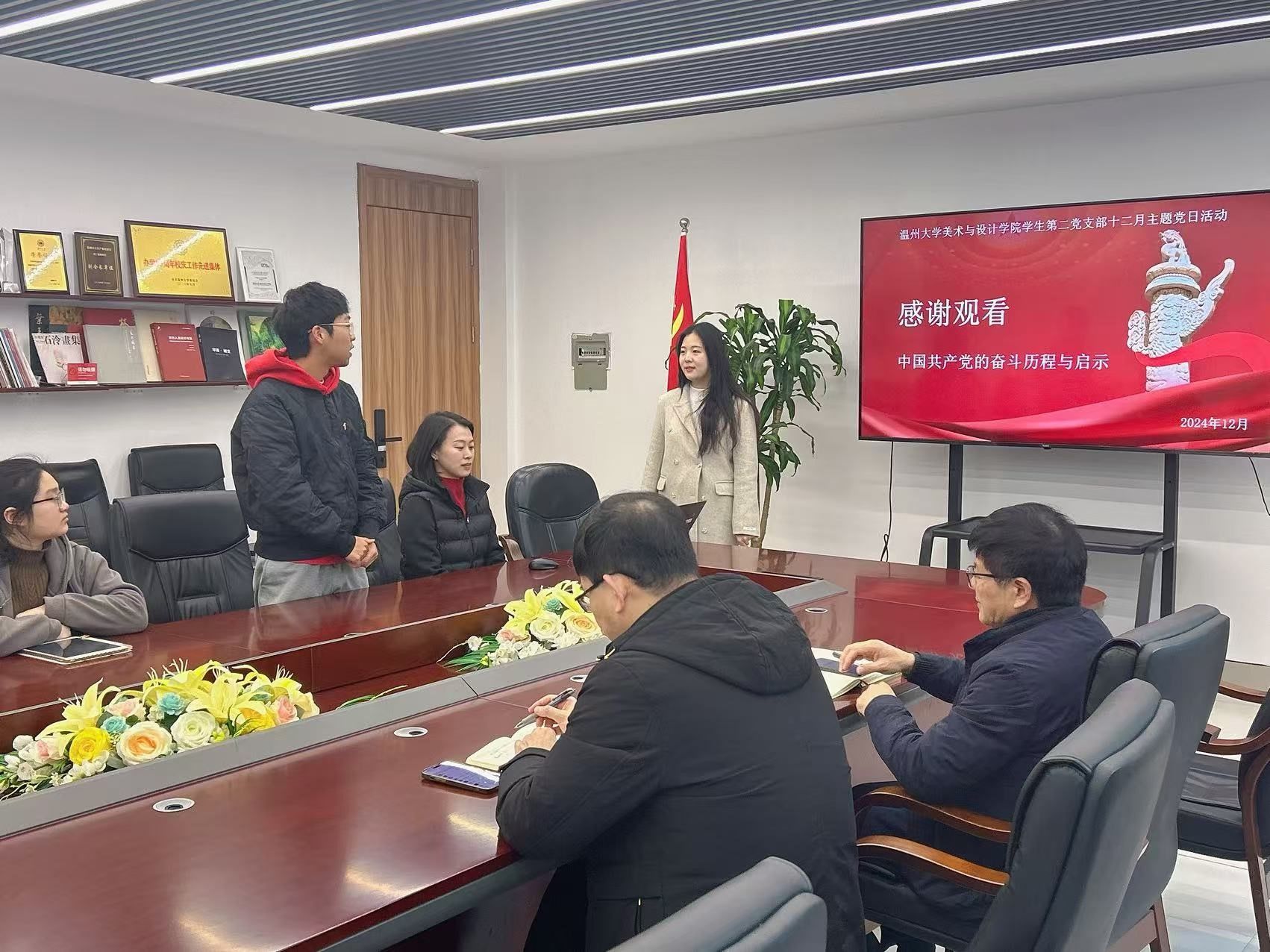2024年12月31日上午,KY开元集团官网入口学生第二党支部在美术楼2B216会议室开展以“跨越百年,党心永恒”为主题的专题学习会,校党委委员王军作为联系该支部的校领导全程参与指导活动。学院党委书记刘青松、学生第二党支部党员全体参加。活动由支部书记陈嘉怡主持。