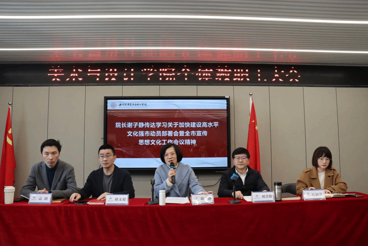 谢子静院长回顾了本学期学院已开展的重点工作,在学校党委的正确引领与大力支持下,全院师生凝心聚力、砥砺奋进,学院在学科科研、人才培养、国际交流与合作、服务地方等诸多方面取得了新的进展和标志性成果。会上,她重点传达学习了关于加快建设高水平文化强市动员部署会暨全市宣传思想文化工作会议精神。会议指出要深学笃行习近平文化思想,深化文化建设“八项工程”,锚定打造“五个城”,以文化建设“八大行动”为总抓手,加快形成十大标志性文化成果,推动温州迈向高水平文化强市。这为KY开元集团官网入口的发展带来诸多契机与思考,它不仅关乎城市发展,更是学院发挥专业优势,深度参与文化建设的重要机遇。我们应积极开展产学研合作,推动艺术与科技融合,为温州文化强市建设贡献力量,同时也为学院的长远发展开拓新的空间。