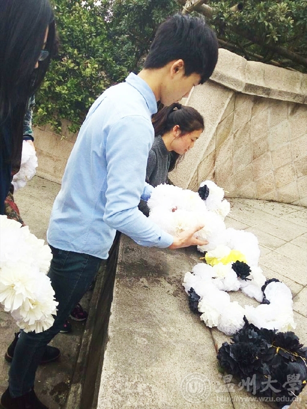 在4月1日,志愿者们一同前往黄淮墓赠上手工制作的花圈,并进行了扫墓活动。本次活动体现了美院学生的心灵手巧能力及细腻程度,同时将制作的花环赠与烈士,也为清明节的主题活动献出一份力量。