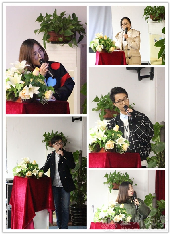 第三项议程是老师讲话。团委书记叶筱卉老师和团委指导老师商义铮对于“每月之星”的演讲表示非常欣喜。团委书记叶筱卉老师说,“每月之星”不仅展示了个人形象,也展示了部门风采。同时老师也建议干事们多谈自己的工作成长,和具体的点滴会更好展示个人的学习收获。同时,叶老师也分享了她的体会心得。叶老师说,比起成绩,成长更重要。我们现在获得的成绩是对我们付出的认可,希望同学们工作中得到锻炼,有所成长。在成长中,我们不能随波逐流,要做好自己的选择,并在现在和将来做好自己。看看自己今天做了什么,有什么可以引领自己,使成长在足够长的时间里得到积淀,再回过头给自己做一个成长鉴定。
