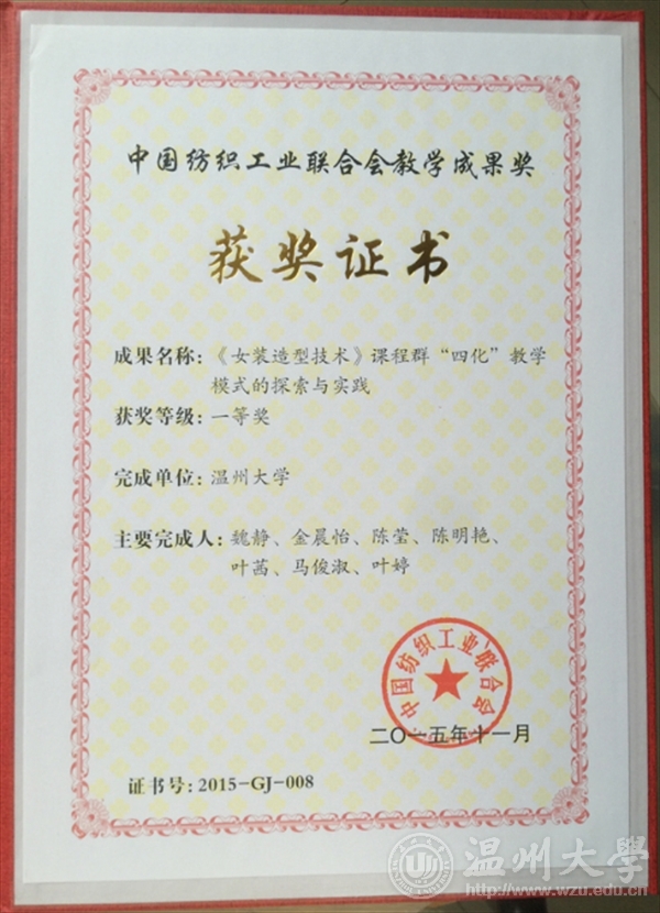 2015年11月24日,“纺织之光”2015年度中国纺织工业联合会科技教育奖励大会在北京人民大会堂隆重举行。中国纺织工业联合会、各专业协会领导,地方行业协会领导,纺织之光科技教育基金会理事以及本次会议表彰的科技工作者、企业家、院校教师与学生获奖代表及媒体嘉宾600余人出席了大会。开元官网魏静教授应邀出席了会议。 纺织之光2015年度中国纺织工业联合会表彰了科学技术奖、教育教学成果奖、教师特别奖、学生特别奖、创新奖、行业技术能手荣誉称号、行业技能人才培育突出贡献单位及个人。充分体现了中纺联对纺织行业科技教育工作的高度重视和对广大科技工作者、教育工作者、学生和一线技术工人的亲切关怀。希望全行业广大员工以获奖者为榜样,带动全行业创新创业的热潮,在攻坚克难中追求卓越,为建设纺织强国作出新的更大贡献。 开元官网魏静教授主持的《女装造型技术》课程群“四化”教学模式的探索与实践荣获2015纺织之光教学成果一等奖;陈明艳教授主持的依托区域产业的服装设计与工程专业卓越工程师人才培养模式的改革荣获二等奖。