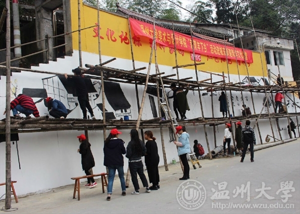 为了响应与落实市委“新青年下乡”主题精神。2015年12月12日,KY开元集团官网入口“艺家人”青年志愿者协会带领美术学院志愿者们来到温州市乐清城东街道珠垟村,进行了为期一天的墙绘活动。