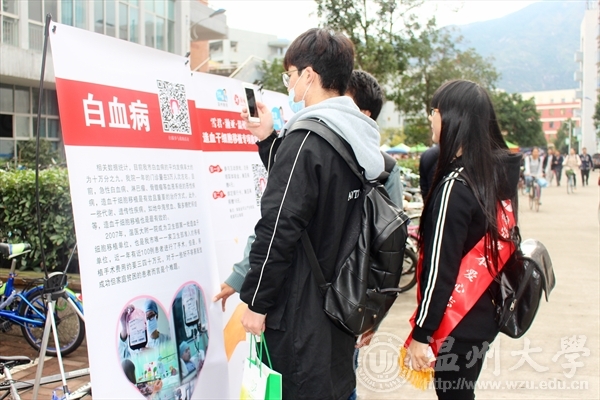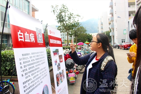 2015年11月25日,开元官网联合机电工程学院以及商学院在温大校园A/C/E区开展雪君工作室白血病专项基金公益活动,美院“艺家人”青年志愿者协会在超豪学区开展活动。这次活动主要是由瀚亚资本投资,在KY开元集团官网入口城通过微信关注海象理财这一公众号,每个学生就都能捐赠4块钱给白血病专项基金,奉献自己一点爱心。 “艺家人”的志愿者们用积极的面孔,努力的做着宣传,用真诚用努力的心为患白血病的儿童多献出一份爱心。 通过这次的白血病专项基金募捐的公益活动,希望能够促使当代大学生更为关注社会热点,关心白血病儿童,并为之献出一份力量。用一颗真诚的心,带动身边的人,更多的加入献爱心的队伍。艺家人”青年志愿者协会王烨拍摄者:林依如2015年11月25日