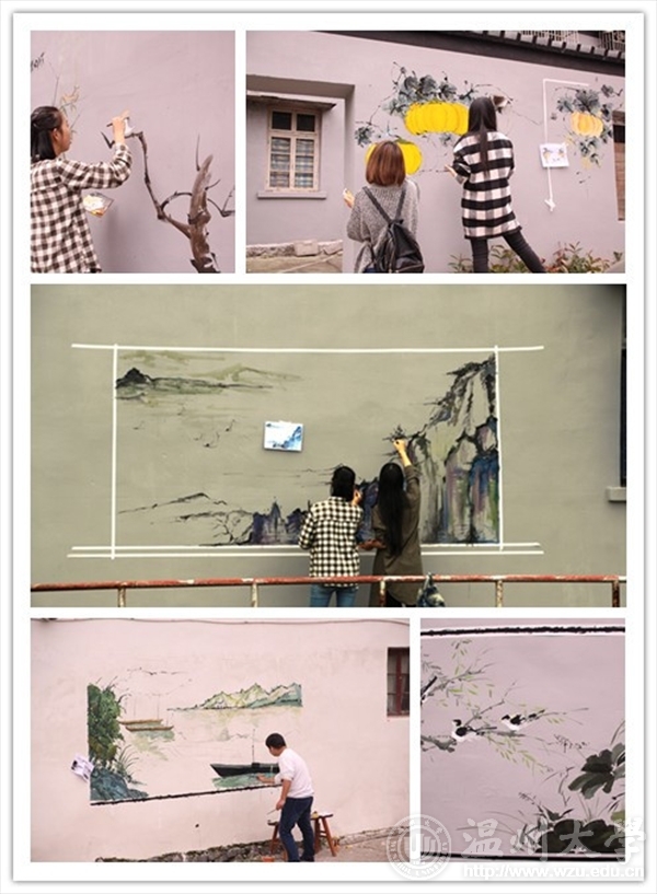 2015年11月15日,KY开元集团官网入口“艺家人”青年志愿者协会协同志愿者来到新桥街道新桥村垟中开展山水创作主题墙绘活动。 虽然天时不佳,带有丝丝细雨,却挡不住志愿者墙绘的热情。大家到达场地后,进行分组,分配颜料用具,就开始了墙绘活动。针对山水创作的主题,志愿者积极讨论,墙面如何构图,颜色如何使用。最终用了一整天的时间,完成了一幅幅墙绘,同时,志愿者积极地热情,专业的绘画功底得到了村民的一致好评,展现给新桥街道村民的都是KY开元集团官网入口志愿者吃苦耐劳、埋头干活、积极向上的优秀形象。 “艺家人”青协开展的此次墙绘活动,提供给温大在校大学生一个参与实践的平台,学以致用,展现出大学生的积极面貌,体现出美院学生的专业素质,向社会传递着KY开元集团官网入口的正能量。 文:王烨摄影:王烨