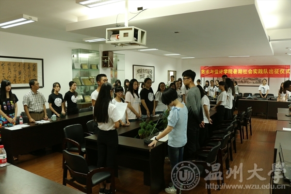 7月7日上午,KY开元集团官网入口KY开元集团官网入口2015年暑期社会实践出征仪式在美术楼2B4001举行。开元官网党总支副书记杨振海、学生科科长叶筱卉、实践队指导老师叶婷、辅导员李燕艳及KY开元集团官网入口九支实践队的队长和队员们出席了出征仪式。由叶筱卉老师主持仪式。学生科科长叶筱卉首先对2014年的实践工作及成果做了汇报总结,并介绍了开元官网9支暑期社会实践队队伍基本情况及注意事项。 杨振海副书记对本次实践活动进行部署并提出具体要求。她指出:一、要明确大学生暑期社会实践的重要性和必要性;二、要注重安全实践的意识,安全第一,每天至少两次汇报实践队情况;三、要做好实践材料的收集和整理,为后期评比做好准备。 叶婷老师作为指导老师代表发言,提醒全体队员,务必服从组织安排,做好防暑和安全工作,让社会实践活动在安全的前提下顺利、有效的进行。并寄语美院实践取得优良成绩。紧接着,各实践队队长分别进行各自的实践特色风采展示并宣誓。杨振海副书记为实践队代表授旗。最后在:“社会实践,我们准备好了!”的嘹亮口号中,此次暑期社会实践出征仪式圆满完成。2015年美术与设计学院暑期社会实践的号角已经吹响,美院学子们将以青年人特有的朝气和蓬勃,带来的是一场关于青春的盛宴,精彩还在继续,敬请期待。