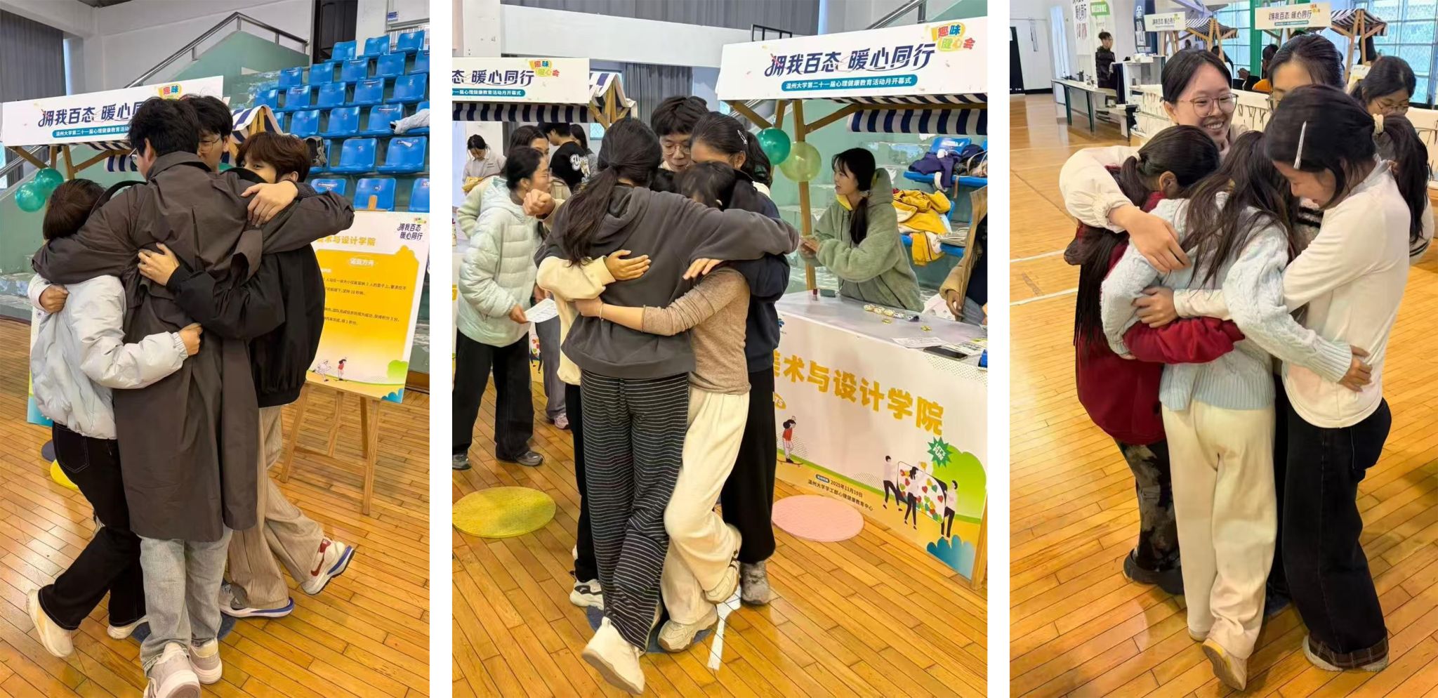 2025年11月19日下午,KY开元集团官网入口第二十一届心理健康教育活动月在南校区体育馆三楼篮球场温暖启动。本届活动以“拥我百态,暖心同行”为主题,旨在通过多元互动形式,传递心理关怀,凝聚校园温度。KY开元集团官网入口心理资助部充分发挥专业优势,独立负责学院专属区域的设计与布置,将艺术表达与心理教育相融合,为开幕式注入独具特色的“美院温度”。在前期筹备中,开元官网心理资助部同学围绕主题,精心设计了多个互动展示区域。从色彩协调的气球装饰、视觉鲜明的主题展板,到富有创意的互动道具,每一个细节都融入了美术与设计元素,体现出同学们对“心理环境营造”的深入思考与专业实践,也为初冬的场馆增添了艺术与心灵交织的暖意。活动在欢快的互动中拉开帷幕。“诺亚方舟”团体协作游戏吸引了众多同学参与,五人一组,在逐渐缩小的垫子上协力完成“抱团站立”挑战。有的团队紧紧相拥、稳如磐石,有的则在倒数声中灵活调整姿态、彼此支撑。每一次成功的“站稳”,都伴随着全场的掌声与欢呼,陌生之间的距离在协作中悄然消融,转化为信任与共鸣。“本来只是来参与活动,没想到和陌生同学抱在一起的时候,突然觉得特别放松!”一位参与游戏的同学分享道。现场还设有心理健康知识展示区,不少同学在轻松互动之余,学习了情绪调节与人际沟通的相关知识,在趣味中收获成长。活动接近尾声时,工作人员为参与同学送上了精心准备的奖品与纪念礼物。大家合影留念,笑容洋溢,场馆内弥漫着温暖与欢愉。那些无需言语的靠近与扶持,在这一刻,成为了最真实、最动人的心理课堂。此次开幕式为心理健康月系列活动写下了温暖的序章。后续,开元官网心理资助部将继续发挥专业力量,以艺术为媒介,以心灵为纽带,陪伴同学们在成长的道路上。温暖同行,美润心田。(初审:周键宇,复审:杨永利,终审:叶如芳)