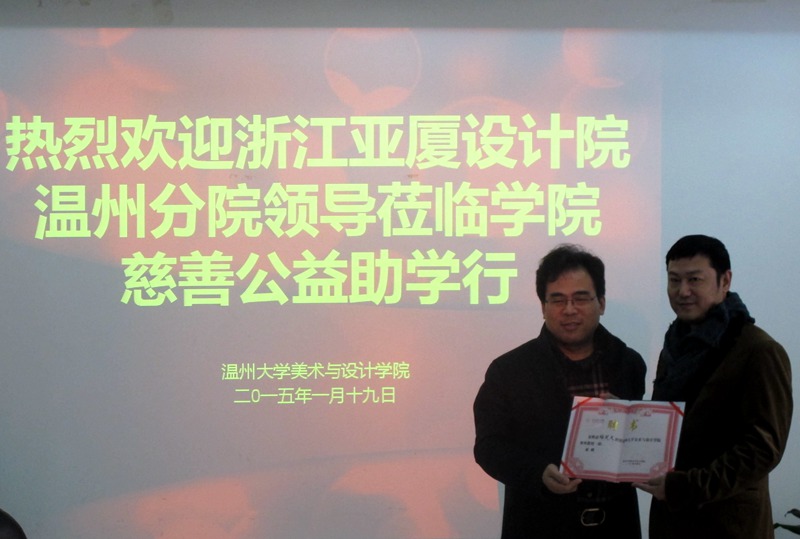KY开元集团官网入口自2014年4月与亚厦温州设计院签定合作协议以来,双方在项目教学、实习就业、人才培养等方面开展了深入的合作。近日学院王剑峰同学在亚厦温州设计院实习,表现优秀!不料其父亲因意外出车祸并未找到肇事者,高额的医疗费让这个普通的家庭陷入困境。当亚厦院长慈善基金会秘书处得知这一消息后,提议首次启动“院长慈善公益基金会”。1月19日上午,“亚厦院长慈善公益基金会”胡逸理事长、梅笑天副理事长、胡世列常务理事等一行来到KY开元集团官网入口开展慈善公益助学活动,捐赠一万元爱心款帮助这个普通家庭慢慢走出困境!传递出设计院全体同仁的浓浓爱心和关怀!出席仪式的有学院李运河院长、郑彩莲书记、杨振海副书记、办公室李丽主任、设计系朱广宇主任、学生科叶如芳科长以及在亚厦温州设计院实习的11环艺班的同学代表。杨振海副书记主持仪式。首先,杨振海副书记对出席此次慈善公益助学的亚厦温州设计院领导一行表示感谢。随后设计系朱广宇主任就亚厦项目进课堂做了介绍,他提到这个教学改革能帮助大学生的课堂与实习就业对接,使学生毕业后能更好地走上就业岗位。而亚厦作为设计界的一位领头军,也非常重视后备力量的培养,学院很多学生走进亚厦,在胡逸院长等很多老师和设计届精英的带领下,进入各个分院或设计工作室进行学习深造,最后也有不少学生在实习结束后正式加入亚厦工作。在亚厦温州设计院实习的11环艺班的同学代表也作了实习感想发言,有同学说,亚厦是一个温暖的家庭,同事间融洽互助;有同学说亚厦的工作环境舒逸,但工作严谨,让人学到很多知识和技能;也有同学说亚厦是一个真诚的大家庭,希望能一直在这样的氛围里工作实习……接着,亚厦温州设计院胡逸院长代表设计院也作了发言,他说,亚厦温州设计院与KY开元集团官网入口有着深厚的渊源,这一次的慈善公益助学行不仅仅是慈善活动,更像是一次年终的成果汇报。亚厦一直重视企业文化的建设和互补性资源的开发利用,秉着“做有文化的生意,做力所能及的事”,传递企业文化中的正能量,推动公益事业的发展,做室内设计业的标杆。最后,郑彩莲书记在听取相关发言后做了总结,她说:“我们深刻感受到亚厦企业文化和美院课堂文化的融合,几个项目的开展推进,展现了双方战略意识的生动合作,也填补了学生在实习就业方面的经验,特别是增加了学生在现场项目的参与度和实践工作的经验值,也希望亚厦温州设计院和KY开元集团官网入口继往开来,开设更多的第二课堂。” 李运河院长也作了感谢发言,他提议双方在2015年开展校企领域的跨界合作,并敦聘设计院梅笑天执行院长为学院客座教授。 一方有难,八方支援!同样值得赞扬的是在亚厦温州设计院同批实习的其他同学得知了王剑峰同学的情况后,也积极发动班内同学伸出援助之手,筹集了几千元善款,给予同学关心与精神上的鼓励。