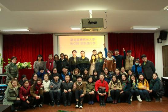 为迎接台湾佛光大学交换生黄亚晴和叶圣杰两位同学来到KY开元集团官网入口进行交流和学习,3月4日下午,开元官网13级产品设计班与13视觉传达班在学院2B4001会议室联合举办了欢迎仪式。出席本次欢迎仪式的领导有学院党总支书记郑彩莲,副教授胡文超和副教授王薇。 首先,由两个班级的同学合作带来的弹奏演唱,清新的风格和用心的演绎博得了现场各位老师和同学们的阵阵掌声,也让来自台湾的新同学感受到了我们美院人的热情和友好。接着,两班班长为新同学致欢迎词,他们都热情大方地表达了对新同学的美好印象,并表示会在以后的学习生活中给予最大的帮助,并送上了班级同学精心准备的礼物。两位新同学分别作了自我介绍,王薇老师和胡文超老师分别介绍了本班专业的情况,并结合自身的经历表达了对台湾同学的赞许和期望,希望他们能够在美院的学习中收获更多的知识和经历。然后,郑彩莲书记代表开元官网向两位新同学的到来表示欢迎,说到两位台湾同学的到来会让开元官网与佛光大学交流的深度与高度更进一步,也希望两位同学在KY开元集团官网入口体验到不一样的文化和生活。最后的自由交流环节,同学们都积极参与,向新同学提出了很多有趣的问题,如“这么远过来会不会想家”“平时说话是不是像电视剧中那样’等等,两位新同学也热情地一一解答。 欢迎仪式的结尾,大家纷纷要求和新同学合影,于是,在热烈的气氛中欢迎仪式也圆满地落下了帷幕。