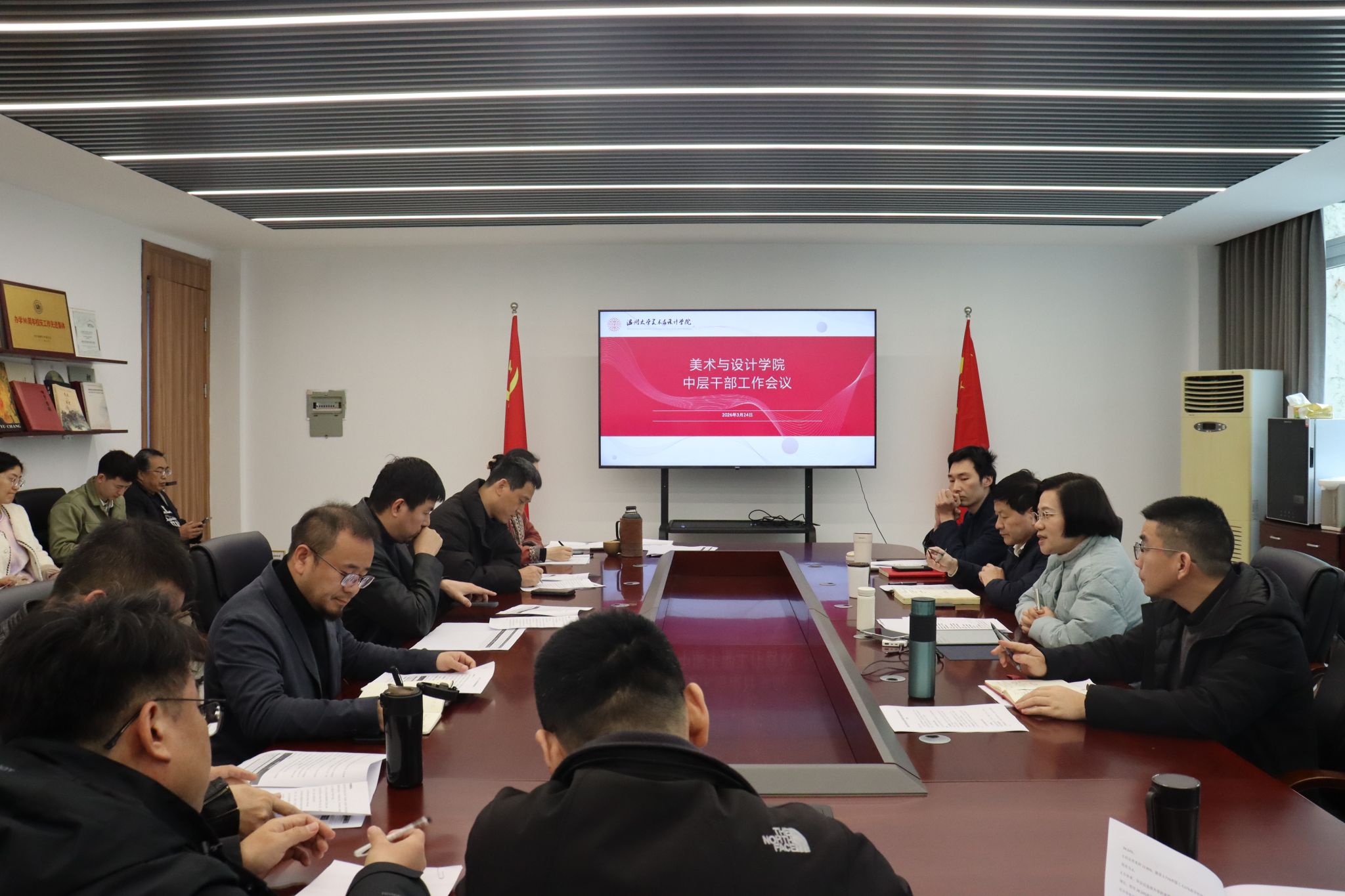 为深入贯彻落实学校各类重要会议精神,细化新学期工作任务,明确工作方向,3月24日下午,KY开元集团官网入口在2B216会议室召开中层干部工作会议。会议由谢子静院长主持,学院领导及全体中层干部参加会议。会议伊始,进行理论学习中心组(扩大)学习会,党委书记刘青松同志传达学习习近平总书记在2026年全国两会期间的重要讲话精神和2026年全国两会精神,以及新学期全校党的建设工作会议精神,部署了落实贯彻工作。他强调要把两会精神转化为推动学院高质量发展的具体行动,努力在区域经济社会发展中展现新作为、作出新贡献。会上,谢子静院长阐明了本次会议的重要意义,强调其是在学校教代会等重要会议之后,推动会议精神落地、细化学院工作的关键会议,围绕工作交流与部署展开。会上,高玥副院长传达学校教学工作会议精神,解读年度教学八大工程并部署学院工作。强调抓好巡视与评估整改,启动本科人才培养方案修订,深化课程思政,推进专业优化、毕业论文质量管控与新文科认证筹备;依托省级课程思政建设完善体系,支持教材建设,推动 AI 与课程融合;同时对实习实践、师范教育、教学成果培育等作出安排。胡文超副院长就研究生教育提出,严格区分本研课程,调整培养方案,整合选修课并推行大班教学;做好毕业论文指导与毕业展筹备,并通报学校公用款管理及场地计费标准调整事宜。随后,各系主任、专业代表教师、科室负责人等结合分管领导部署,围绕自身工作思路、重点任务及推进计划进行交流发言,就人才培养、专业建设、实践教学等方面的难点问题展开探讨。最后,谢子静院长作总结讲话。她对各位分管领导的工作部署及与会人员的交流发言给予肯定,要求全体中层干部提高思想认识,切实将会议精神传达至各教学环节、各工作岗位;聚焦审核评估整改、人才培养方案修订、毕业论文指导、毕业展筹备、新专业申报等重点工作,压实工作责任,细化工作举措,确保各项任务有序推进、落地见效。同时强调,全体中层干部要发挥骨干带头作用,凝聚工作合力,推动学院教学、科研、管理等各项工作高质量发展。(撰稿:张珈瑜;初审:张珈瑜;复审:黄旭红终审:谢子静 刘青松)