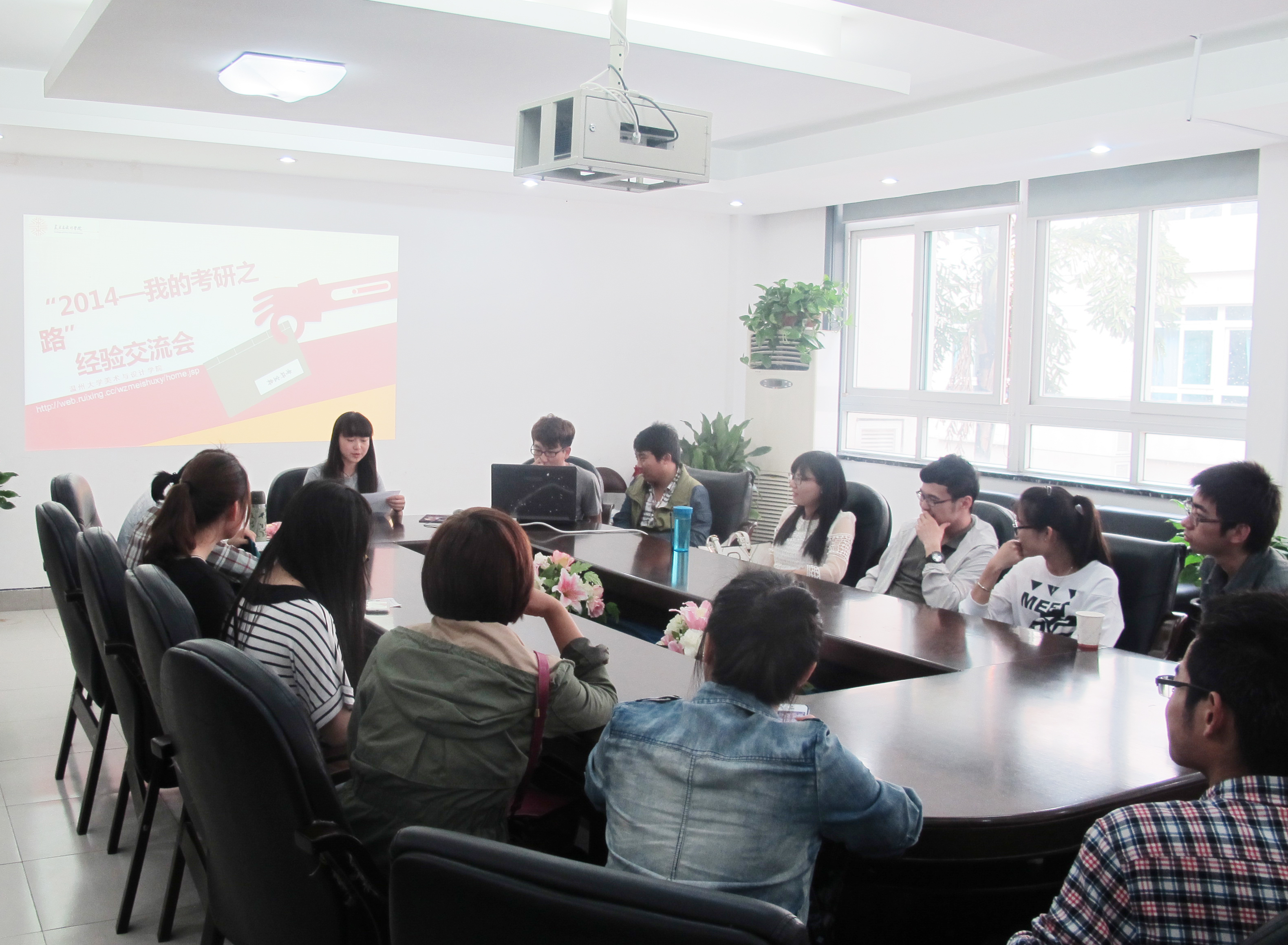 5月14日下午,由开元官网团委学生会学术科技部主办的“2014梦想的延续——我的考研之路经验交流会””在2B-216顺利举行。学生科副科长叶如芳、辅导员杜茜老师和10级考研录取的同学出席了此次活动。