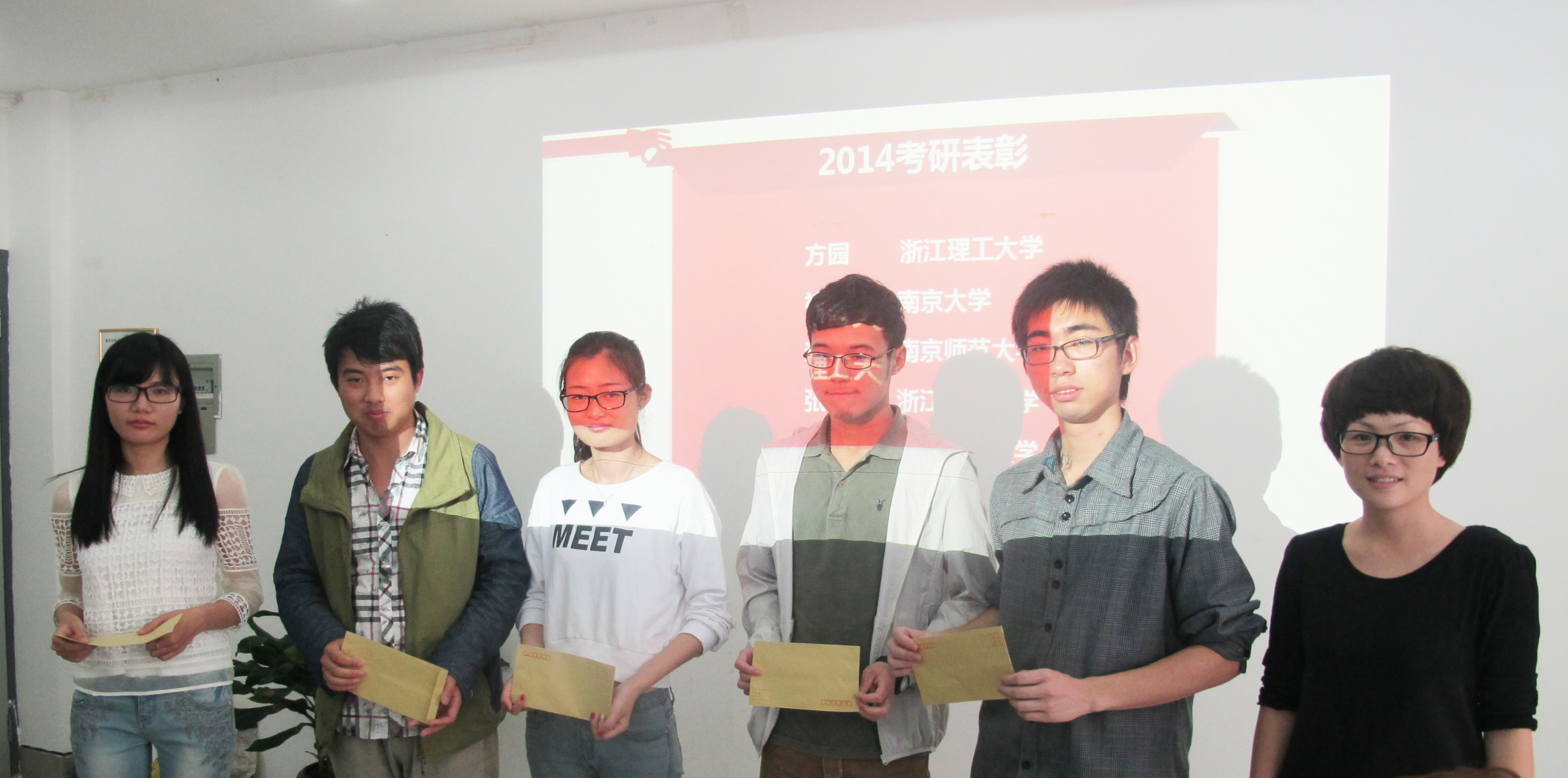 叶老师首先对开元官网2014年国内考研成功录取的美本师范班褚明敏、服装设计与工程班方圆、环境艺术设计班赵锦程、美本班张伟佳、服装设计班邬仁亚,和国外考研成功录取的环境艺术设计班袁炜楠、平面设计班李奕璠、鞋靴设计班魏子八位同学进行了表彰仪式,并颁发了学院奖金。叶老师讲到,考研经验交流会让在座的每位同学能够真切、直观、详实地体会考研路上的辛苦与喜悦,相信在知识道路上坚持的同学们都会收获更好的自己!