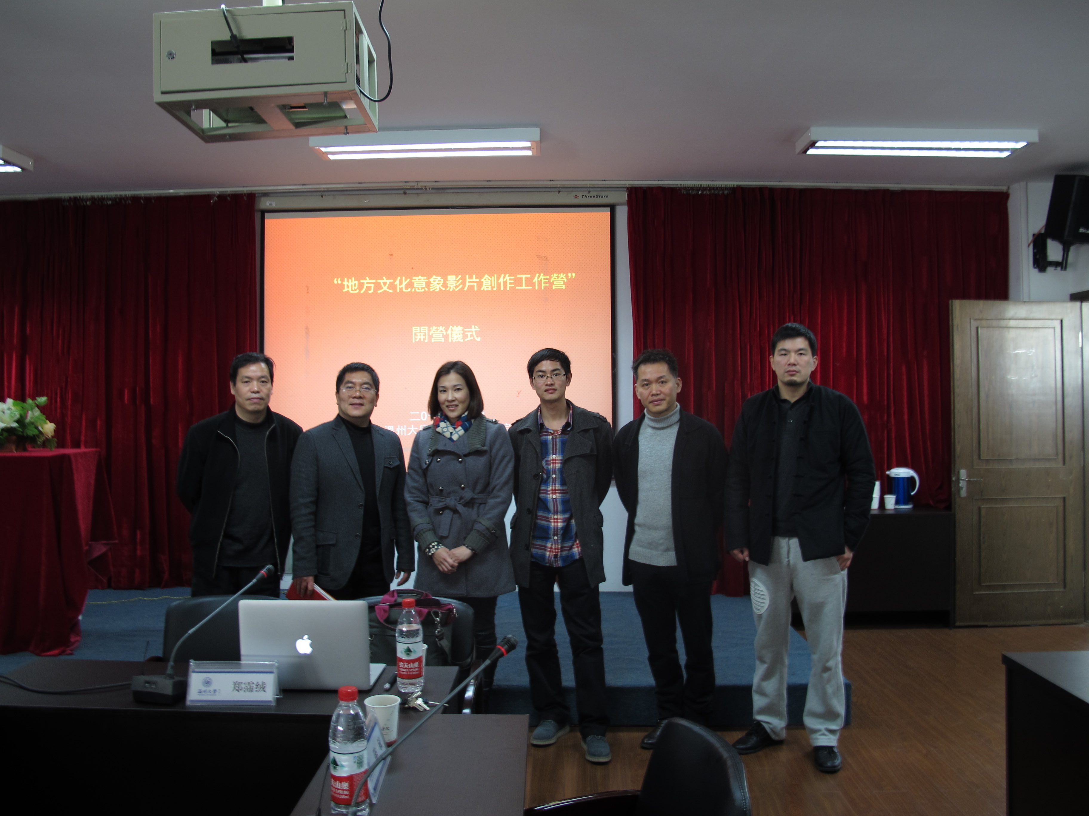 活动伊始,副院长蔡可群对郑霈绒老师的到来表示热烈的欢迎,教务处副处长蔡桂平为本次活动致辞。接着,蔡院长宣布“地方文化意象影片创作工作营”正式开营,全体老师合影留念,共同见证双方学校交流友谊的美好瞬间。