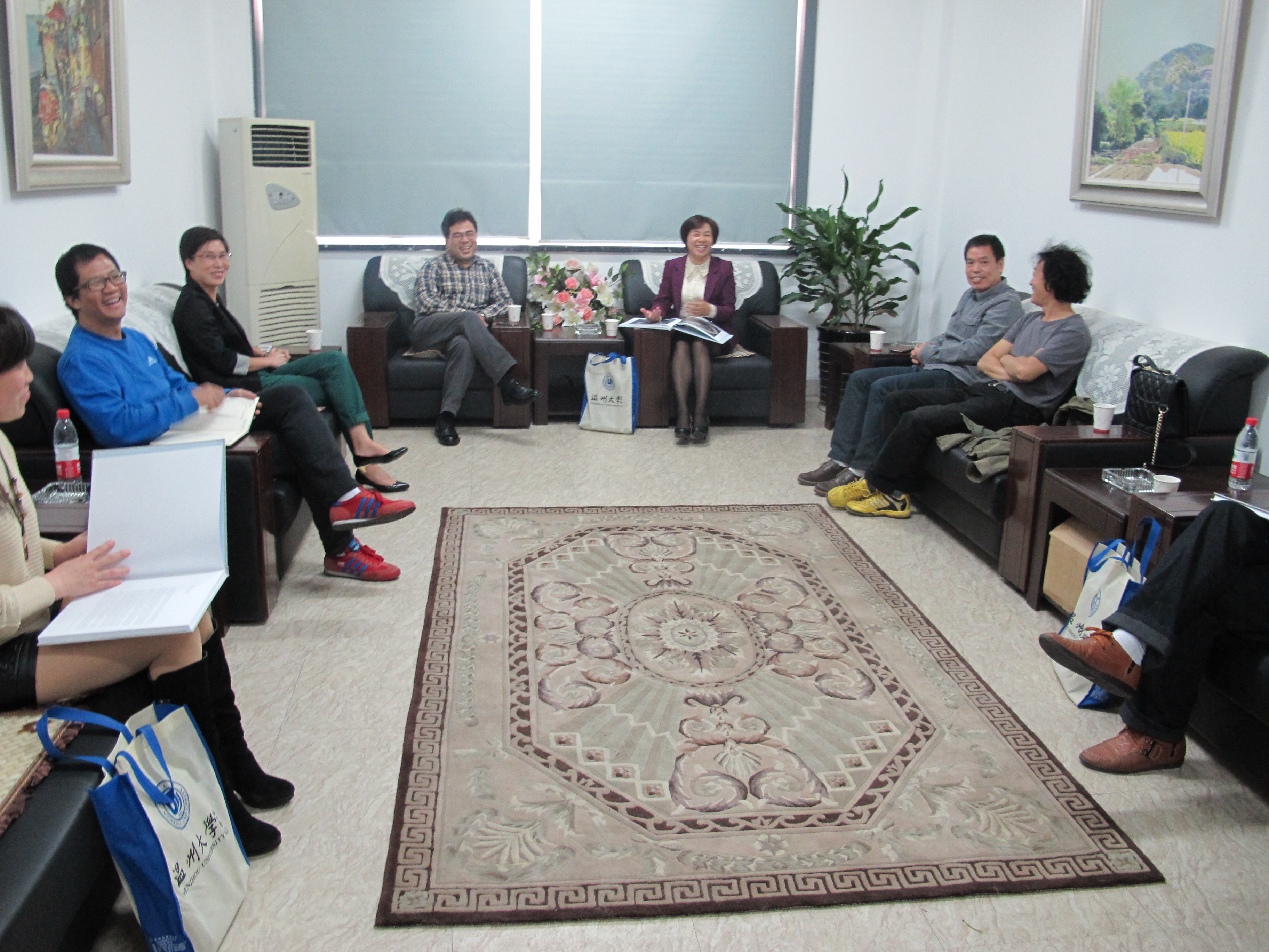 2013年10月25日,青田中山中学校长严银红一行五人来开元官网参观交流。院长李运河、党总支书记郑彩莲、副院长蔡可群等出席了座谈会。