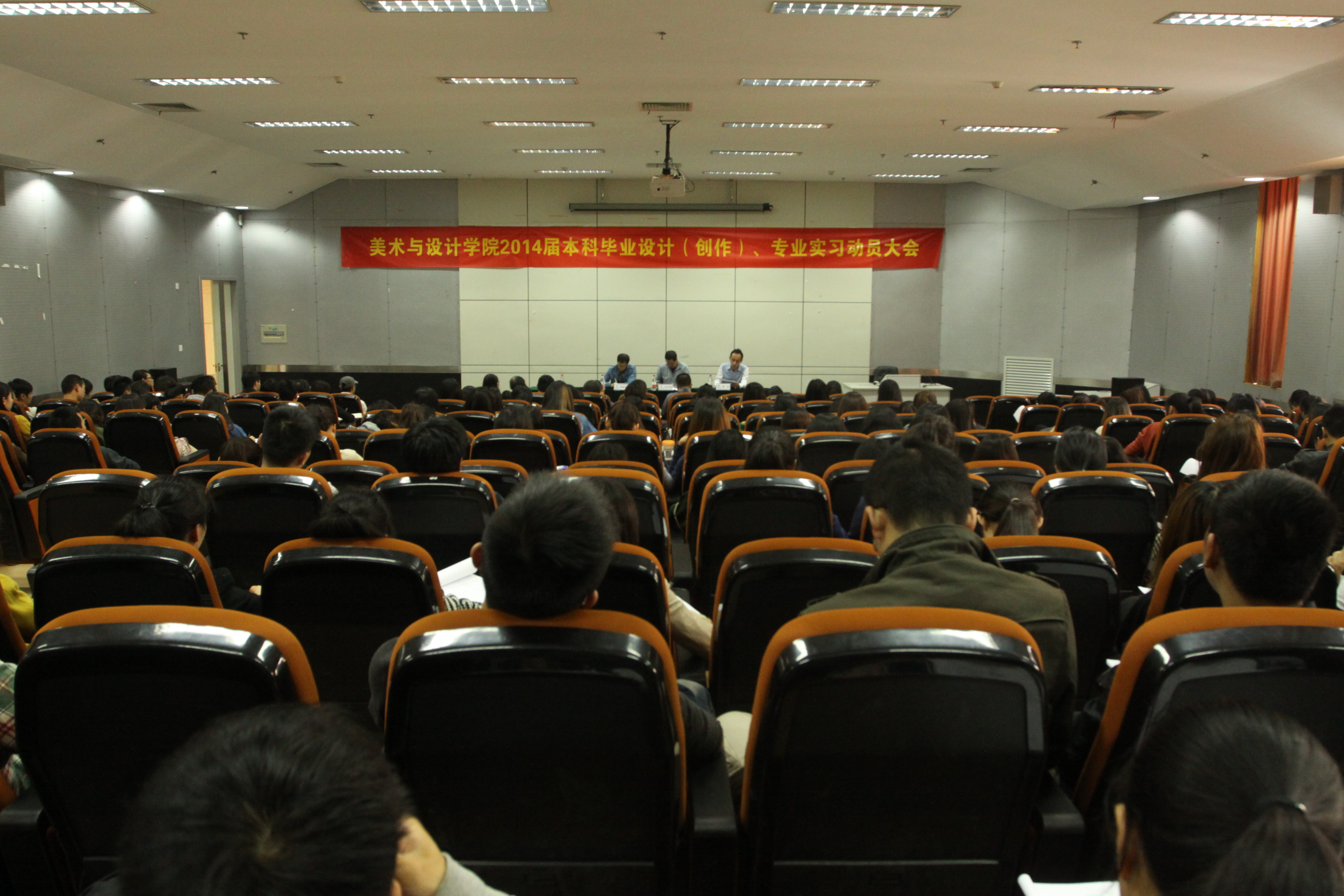 为顺利开展2014届毕业设计工作,11月8日上午,KY开元集团官网入口2014届本科毕业设计(创作)、专业实习动员大会在学校会展中心叶适厅举行。学院副院长蔡可群老师,副书记杨振海老师,教学科邹青老师,及美术、设计、服装三个系的系主任、各位毕业设计指导老师及全体14届本科毕业生参加了会议,会议由邹青老师主持。