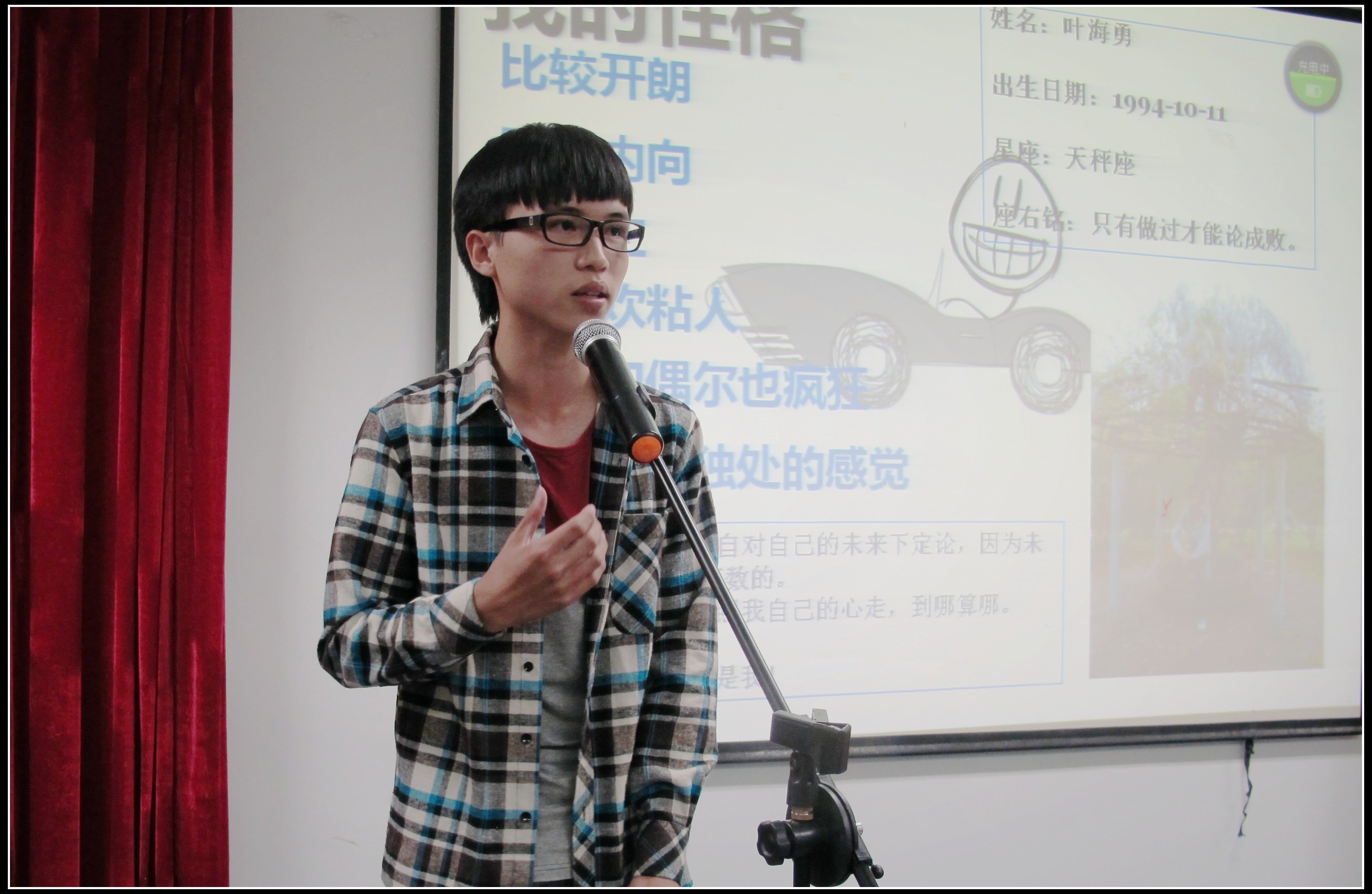 10月16日晚六点,KY开元集团官网入口2013级新生演讲赛决赛在2B4001顺利举行。校主持队队长谭博,校主持队优秀主持张清泉、刘志远,人文学院研究生贺书伟,KY开元集团官网入口研究生吕诚担任本场比赛评委。出席本场决赛的还有院学生会主席团成员及部分2013级新生。
