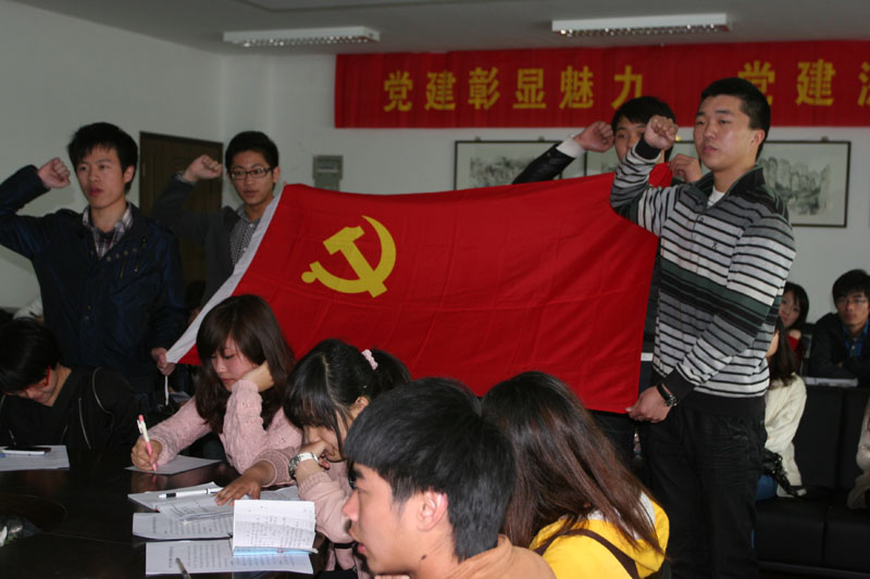 4月6日下午2点,KY开元集团官网入口第14期业余党校开学典礼在2B4001会议室举行,学院党总支书记、分党校校长郑彩莲出席典礼,学生科辅导员徐聿淼老师,刘英丽老师参加,同时学生各支部书记、第十三期分党校优秀学员及分党校全部学员参加典礼,开学典礼由徐聿淼老师主持。 伴随着雄壮的国歌声,全体人员肃穆起立,高唱国歌。接着预备党员在庄严气氛中宣誓,会议室回荡着他们铿锵有力的宣誓声音,充满了浓重的历史感。牛广强同学和于洋同学作为党员代表和入党积极分子代表发言,牛广强同学以自身经历给本期学员提出建议,号召他们珍惜培训机会,端正入党动机,在学习过程中不断提升自我;于洋同学表示成为入党积极分子是催人奋发上进的动力,在座学员应该树立正确的人生观、价值观,用虚心的学习态度和良好的学习成绩早日向党组织靠拢。典礼上郑彩莲书记为学院第13期分党校优秀学员颁发荣誉证书,柳俊丰宣读了本期党校的培训计划以及注意事项,强调了党课纪律,并对党课培训计划做深入解读。 随后郑彩莲书记对本期学员表示热烈欢迎,并提出殷切期望。郑书记首先结合入党誓词中的关键词展开解读,对每位学员提出要求,号召学员以党员的标准严格要求自我;并针对党员代表的发言,谈到党员成长和境界的提升历程,希望在座学员在学习中提升自身境界,向党员看齐,追求进步,辐射周围同学;然后,结合国际国内形势,以及自身工作环境和生活条件的改善,勉励学员真信、真学共产党,用信仰的力量增强对党组织的认识;郑书记强调今年大事喜事不断:迎接建党90周年、学校、学院十二五开局、学校第一届党代会即将召开、创先争优进入关键时期等,学院将举行系列特色活动,希望广大积极分子能够在艺苑杯比赛、第三届艺术展演中有身影,有精品,展现风采;接着结合组织谈话中出现的问题,要求学员们课堂认真听讲,课下勤于思考,着重思考马克思主义与反马克思主义的界限、中国特色社会主义民主与西方民主的区别、社会主义文化与封建主义、资本主义文化的差异等理论问题,不断坚定自身信仰,提升自身修养;最后郑彩莲书记希望在座学员认真对待本次学习机会,遵守纪律,顺利毕业,用优异的成绩向党组织靠拢。 开学典礼后,学员们认真观看了电影《建国大业》。