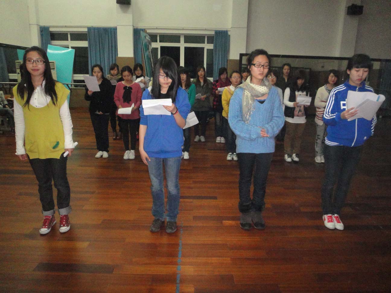 2011年4月8日晚6点,为迎接建党90周年KY开元集团官网入口大型诗歌朗诵会,在KY开元集团官网入口南校区2C402进行开元官网学子的朗诵排练。在开元官网文艺部负责人及干事的组织带领下,我们学院的大一同学踊跃参与、积极配合,李剑军老师也在百忙之中前来察看,大家齐心协力,只为能在第二天的校朗诵比赛中惊艳四座。