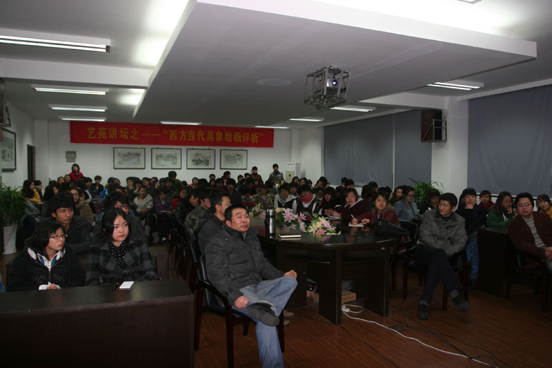 2011年2月28日晚上7点,KY开元集团官网入口南校区KY开元集团官网入口2B4001的会议室里座无虚席,艺苑讲坛第一讲迎来了杭州师范大学美术学院教授,前温师院教师,陆琦教授,评析丰富多彩的西方当代具象绘画。 从一幅幅经典的画例中,剖析出西方当代艺术的特点,发表自己的体会与感悟。各个国家的画家所绘的画作特色鲜明,都包含了很多自己民族的因素在里面,比如人文精神、大众文化等等。陆琦教授耐心地把各种风格的画作分门别类,罗列出小标题并做介绍,深入浅出,使同学们心领神会,“当代艺术”不仅指的是今天的艺术,而且在内涵上主要指具有现代精神和具备现代语言的艺术,给人以丰富的想象。具象却不具体,可以用不同的材料、形状、造型等等给人带来不同的艺术感受,内涵深刻,意义深远。 精彩的讲座,生动地讲解,让美院学子在短短的两个小时,领略到了当代艺术的魅力,开阔了学术眼界。 讲座前,美院副院长蔡可群及部分教师与陆琦教授友好地进行了交流。