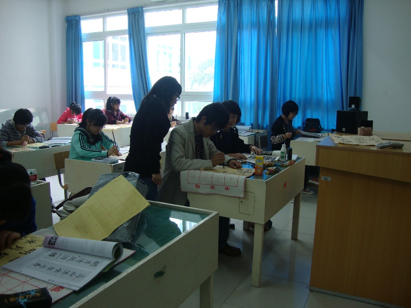 2010年11月21日上午9点在KY开元集团官网入口2B2001教室和2B4001教室内,KY开元集团官网入口书法培训素拓班正在开始本学期的最后一堂课。 该培训班是KY开元集团官网入口团委素拓中心开设在开元官网的一个书法培训班,由开元官网08美术国画班的陈龙龙同学担任该班指导老师。该班于本学期第六周开课,累计上课次数6次,上课时间固定在每周周日上午9点至11点半在KY开元集团官网入口2B2001和2B4001,该班成员来自学校各个学院,其中正式学员40余人,旁听生10多人。 根据学生上交的心得来看,陈老师很尽职尽责,而且循循善诱,在学生中口碑很好。陈老师不光光有着老师的身份,还是一位学长,更贴近学生生活,具有亲和力,有利于彼此间的沟通交流,对学生们书法水平的提高有很大帮助。在谈话中了解到该班在上课期间曾有过一次表演活动,老师当堂表演4分钟的书法,技艺精湛,赢得了学生们的一致好评。课堂上,同学们都认真在练习毛笔字,学习氛围浓厚,老师则在一旁指导,给出了很多宝贵的建议。 据悉,在此次课堂结束之后还将开展一次书法表演,这会是一次很好的书法交流的平台。大家尽请期待!