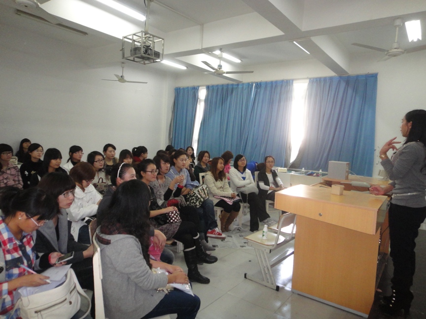 2010年11月20日星期六14:00~16:00,在美院2B3001,雪思美容院院长、医学院WinGirl俱乐部指导老师朱来顺,为开元官网的化妆培训素质拓展班画上一个完美的句号。 此次培训是朱老师在本学期第四次给大家辅导。其热烈的掌声,阐释着大家对本次培训的渴求和对朱来顺老师的喜爱。朱老师说,化妆是艺术。她要求人们在化妆之前先了解自己今天穿了怎样的服装,代表着怎样的形象以及自己的性格;希望每个人能了解自己面部的优点和缺点各是什么。然后,她让同学来当模特,一步一步地教同学们怎么样打底、修眉、调肤色、画眼线、眼影、腮红和唇彩。而同学们也是热情高涨,积极提问,踊跃参与其中。在示范的过程中,她也再三强调该注意的地方。比如定妆时要用散粉,补妆时要用粉饼,刷子半年洗一次,而在平时,只要用散粉洗就可以了……示范结束后,她则让同学们自己亲手实践。 这次培训,不仅让爱美的女生体验到了化妆带给她们在外表上的飞跃,更是让她们学习到了化妆的真正技巧。