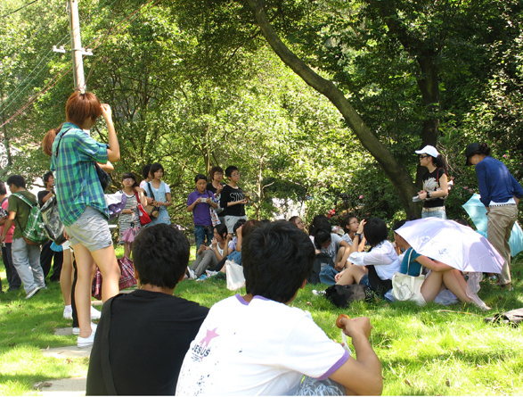 9月23日上午,服装系2010级服装设计2个班的学生在班主任叶茜老师的组织带领下乘坐校车前往仙岩风景区开展“快乐中秋”主题班会。在景区的一块草坪上,大家欢聚一堂,叶茜老师为每位同学在这个特别的日子里送上了一份精美的月饼以表中秋祝福。据叶老师表示,当年其在法留学时过中秋曾感受到的是独在异乡为异客的心情,而现在很希望能给大学新生带来一份大家庭的温暖气氛。 此外,借此活动,还推选了班委,其中由2个班的文艺委员带头预演了迎新晚会的节目,同学们展示着各自的青春风采,度过了大学中的第一次柔软时光。