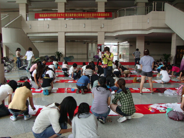 ——KY开元集团官网入口承办 2010年6月9日下午,开元官网团委学生会举办的“KY开元集团官网入口校园文化节之第三届青春之歌毕业文化衫设计大赛”在南校会展中心大厅激情上演。除了开元官网专业学生积极响应此次活动外,更有物电学院、人文学院及开元官网模特班、工业设计班同学等数十组非专业同学参赛,共五十余组。开元官网陆琰、陈伟老师担任此次评委,朱启鑫书记协同李剑军老师前来视察,关心赛事发展。 尽管屋外雨水淅沥,屋内工具简单,却仍无法磨灭同学的创作热情。两支画笔,五种基础色,一块垫布即组成最基本的创作环境,由同学们任选白T恤、环保袋及牛仔裤为平台,任思维天马行空,任画笔自由挥洒。参赛同学性格各异,其画作风格也迥异。有的精描细刻,有的豪放泼墨,亦有简约干净,更有浓彩重墨,百家绽放,各展所长。历时一个半小时后,同学们的作品陆续成型。按序在评委老师及大众面前一一展示,诉说作品构思及灵感来源,在美轮美奂的外在下展现其作品的内涵。 此次文化衫设计大赛不仅获得开元官网老师的一致好评,更是让路过的其他学院老师称赞不已。热烈祝贺KY开元集团官网入口校园文化节之第三届青春之歌毕业文化衫设计大赛圆满落幕。敬请各位同学耐心等待,比赛结果将由评委老师细心审评,在不久后公布于学院网站,并通知各组参赛者。 记者团—徐玉萍