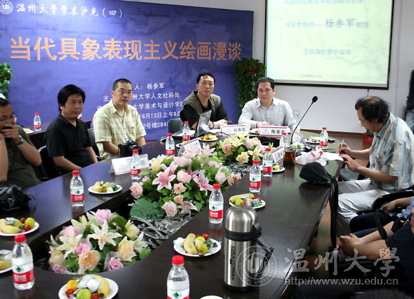 6月13日上午,由我校人文社科处主办,KY开元集团官网入口承办的第四期学术沙龙《当代具象表现主义绘画漫谈》举行。中国美术学院著名画家杨参军教授,校党委委员、人文社科处处长陈安金,温州美术界画家,KY开元集团官网入口的部分师生参加了此次学术沙龙,并就议题展开学术交流。 “人们不须再现自然,而是代表着自然”。杨参军从著名的法国画家塞尚引出话题。他说,西方画家的具象表现主义强调用视觉观赏,就像现在的快餐文化,把绘画观念化、概念化、僵化和城市化。杨参军指出,他在平时观察中发现中国美术院的学生们给观念化、概念化的具象表现绘画注入了新的力量,从而发现了现代中国在接受具象表现绘画的同时也注入了自己的特色,自己的民主精神。杨参军把自己比喻成是一个52岁的“婴儿”,用好奇、迷恋的心态对待世界,不被欲望和虚拟的文化影响自己的绘画。他强调要强制、训练自己以“撒谎”、虚构、恬淡的心态看世界。 陈安金指出,艺术文化折射的是一种交响文化,既抽象又现实。此次沙龙让人感受到了中国艺术教育、艺术创作、中外文化三者的有机结合。思想、哲学、艺术均是怀着一份淡淡乡愁的美,希望这种乡愁永不熄灭。