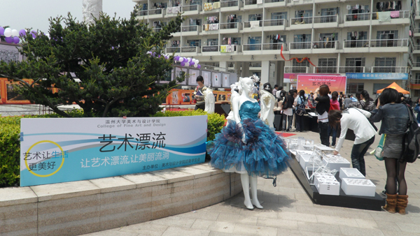 2010年4月28日对同学们来说是再普通不过的日子,与往常一样的早起赶上课、下课冲食堂。然而今天,许多同学却停下了匆匆的脚步,被一些创意独特的鞋靴、服饰等吸引,纷纷驻足在温大生活区A区,欣赏由温大KY开元集团官网入口主办的“艺术漂流”巡回展览。