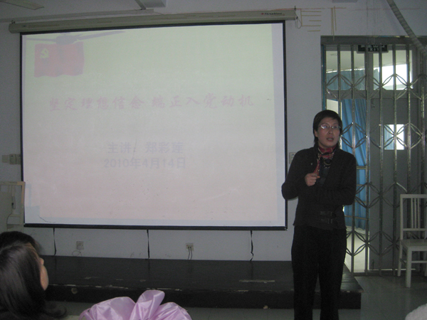 2010年4月14日星期三下午,KY开元集团官网入口第12期院党校第一讲——“大学生的学习动机”在2A308顺利召开,由美院党总支书记郑彩莲老师担任主讲人。
