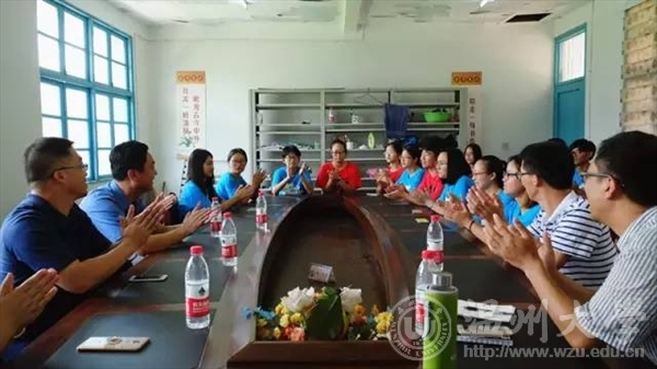 7月15日上午,校党委委员、副校长钱强在校团委副书记魏一、美院党总支副书记杨振海、校团委办公室成晓等陪同下,专程赴平阳县怀溪镇中心小学亲切慰问开元官网“绘暖向南”暑期社会实践队,怀溪镇委书记金建辉陪同慰问。慰问会由学院党总支副书记杨振海主持。他简单介绍领导和实践队的日常工作和实践历程后,由实践队队长许雷介绍主要开展的两项志愿活动——墙绘和支教。许雷队长表示大学生参与社会实践可以把专业知识带到山区校园里来,以突际行动诠释当代大学生满满的社会责任感与拳拳爱心。鲍彬彬同学谈到“绘暖向南”实践队的名称,就是传递爱,奉献我们的爱,创造出一支好的团队,继续传承下去。能够用自己的专业美化校园,用心地去教导孩子们。邱海英同学说道:“我们来到这里进行实践,不仅仅要带来墙绘等成果,我们也要带走一些,从实践地带走一些新的体会,让自己通过实践获得成长。”副校长钱强谈到“走基层,体验社会,观察社会,去培养我们的社会责任感,才是有意义的实践,这些深切的生活体验,我相信一辈子都会记得。”接着,副校长钱强也与队员们深入交谈,建议实践队到更艰苦的地方去,把美与爱留在了实践地。对团队的分工协作,团结意识,适应能力表示了赞扬。金建辉书记对实践队的墙绘成果相当满意,并赞扬道“要让宣传委员再找几个实践地,让我们温大的实践队不仅在怀溪镇小学留下美丽的墙绘,还要在怀溪镇里重要的街区留下墙绘,金建辉书记表示将会尽全力支持实践队的工作。 学校领导在百忙之中,抽出宝贵的时间前来慰问实践队队员,带来了许多欢乐与安慰。作为一支吃苦耐劳、积极向上的实践队,事必躬亲的确很累,但是也收获到了满满的爱,每一个阶段都收获良多。
