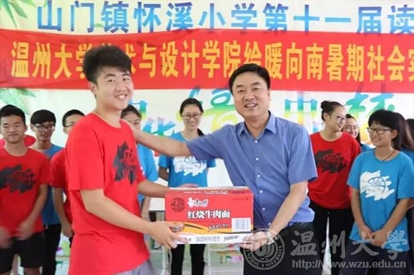 7月15日上午,校党委委员、副校长钱强在校团委副书记魏一、美院党总支副书记杨振海、校团委办公室成晓等陪同下,专程赴平阳县怀溪镇中心小学亲切慰问开元官网“绘暖向南”暑期社会实践队,怀溪镇委书记金建辉陪同慰问。