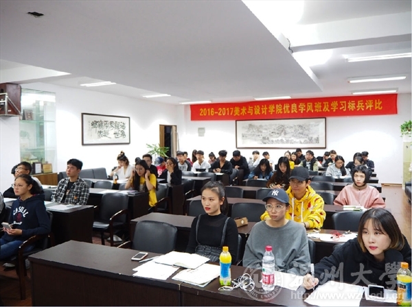 2017年11月3日晚,KY开元集团官网入口2016-2017学年优良学风班及学习标兵的评比在2B4001顺利举行。本次评比由学生科李雪涛老师、团委学生会主席陈显楠同学、团委学生会副主席王佩瑜同学、团委学生会副主席王芳园同学以及美院各班班长担任评委。